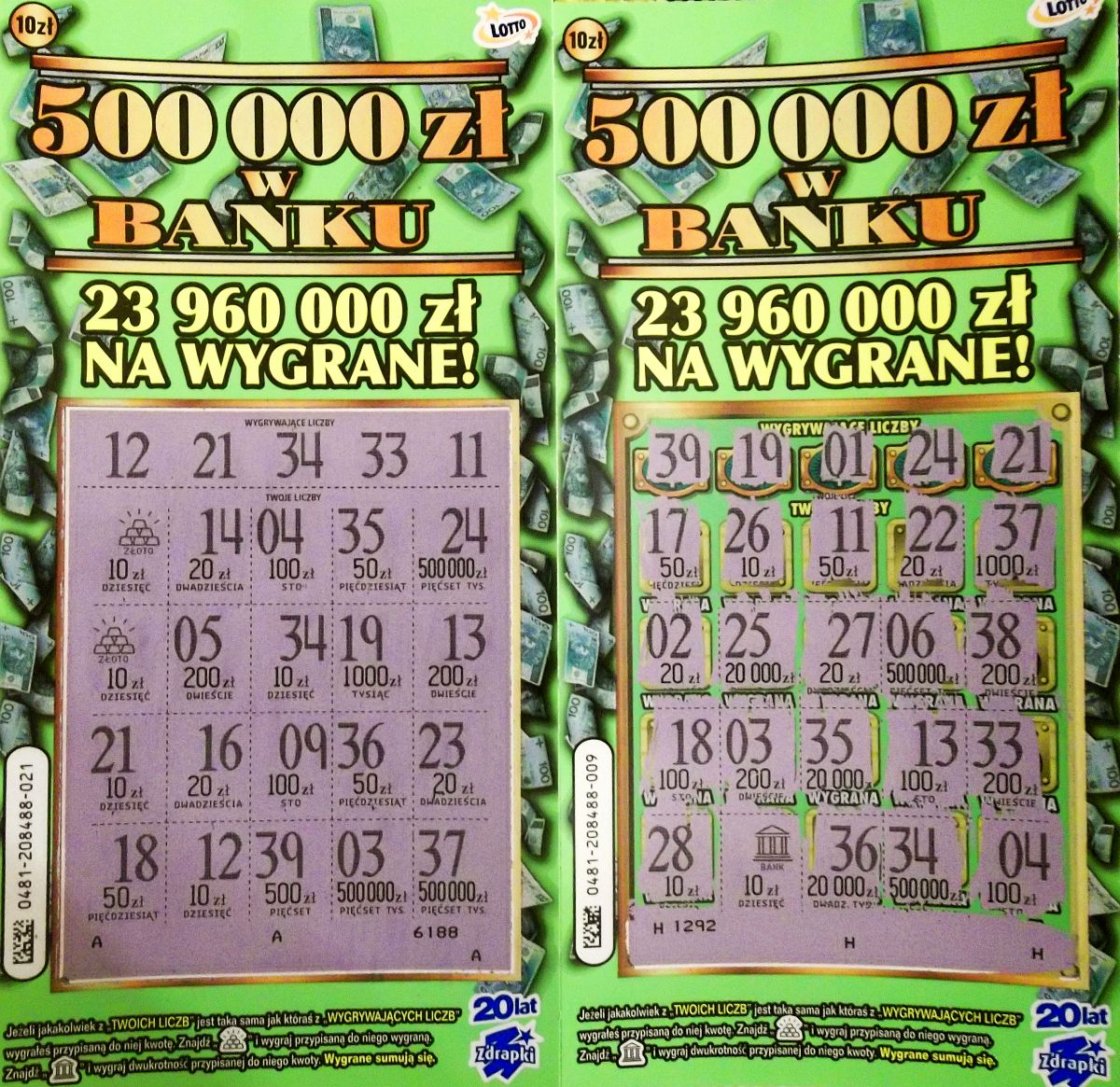 Zgadzam się z ER. Ja swego czasu odpuszczałem każdą zdrapkę bez głównej i kilka razy się na tym przejechałem bo uciekły mi fajne wygrane. Raz odpuściłem Diamentową 7 gdzie wsród kilku ostatnich zdrapek było ukryte 700zł ( oczywiście mogło się zdarzyć, że mimo wszystko bym jej nie wylosował no ale.. ) raz odpuściłem Ekstra Pensję ( zły przedział ) a była stówka wśród ok 10 ostatnich sztuk, 1000zł było w Wielkiej 777 też przy 3-4 ostanich sztukachER33 pisze: ↑22 maja 2019, 1:40Gram bez względu na to czy główne jeszcze są, czy już ich nie ma. Wiem, że w zielonej bankowej nie ma już nagrody I stopnia. Niektóre główne są kompletnie nieosiągalne i nieuchwytne, więc jakie to ma w tej sytuacji znaczenie? Nie rozumiem tych, którzy odstawiają jakąś zdrapkę do kosza, bo nie ma w niej już głównych. Samo podejście mega absurdalne, ponieważ tym samym pozbawiamy się nagród niższego stopnia i sami eliminujemy się z gry. A patrzenie tylko i wyłącznie na główną, to jak szukanie igły w stogu siana. Przecież to nierealny wyczyn, a prawdopodobieństwo wiadomo jakie. Gdybym miała grać tylko dla samych głównych, to chyba żyłabym tylko i wyłącznie złudzeniami, a marzyć przecież można