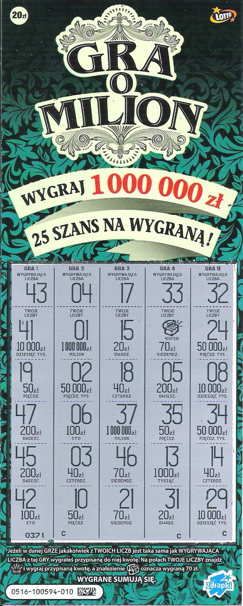 Wzięłam dziś z nowej paczki nr 001 oraz nr 011.Nr 011 był pusty natomiast w nr 001 trafiłam 40 zł.Wygraną wymieniłam na nr 006, który był pusty oraz nr 010, w którym trafiłam "kuferek"