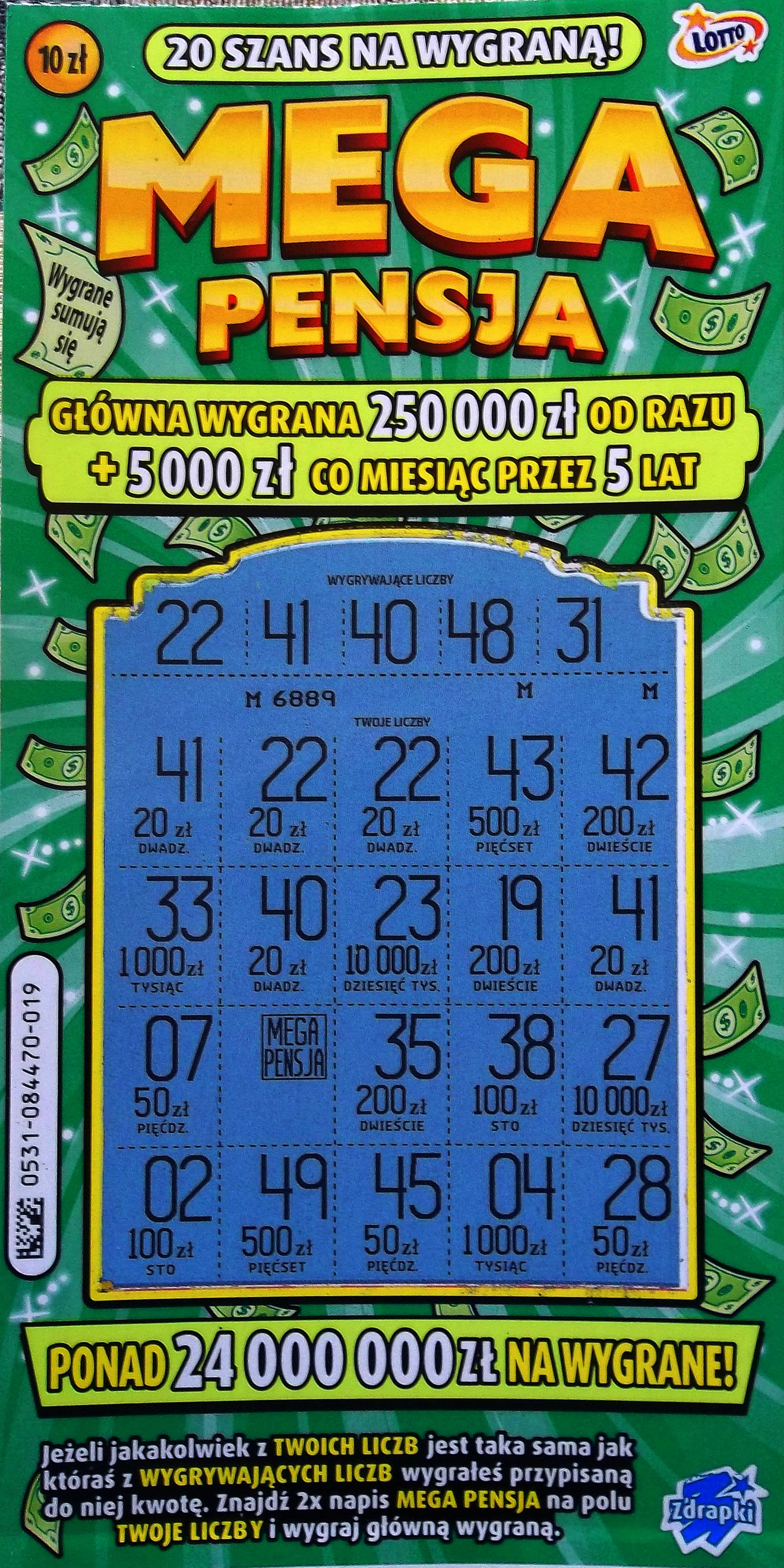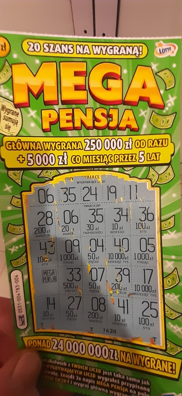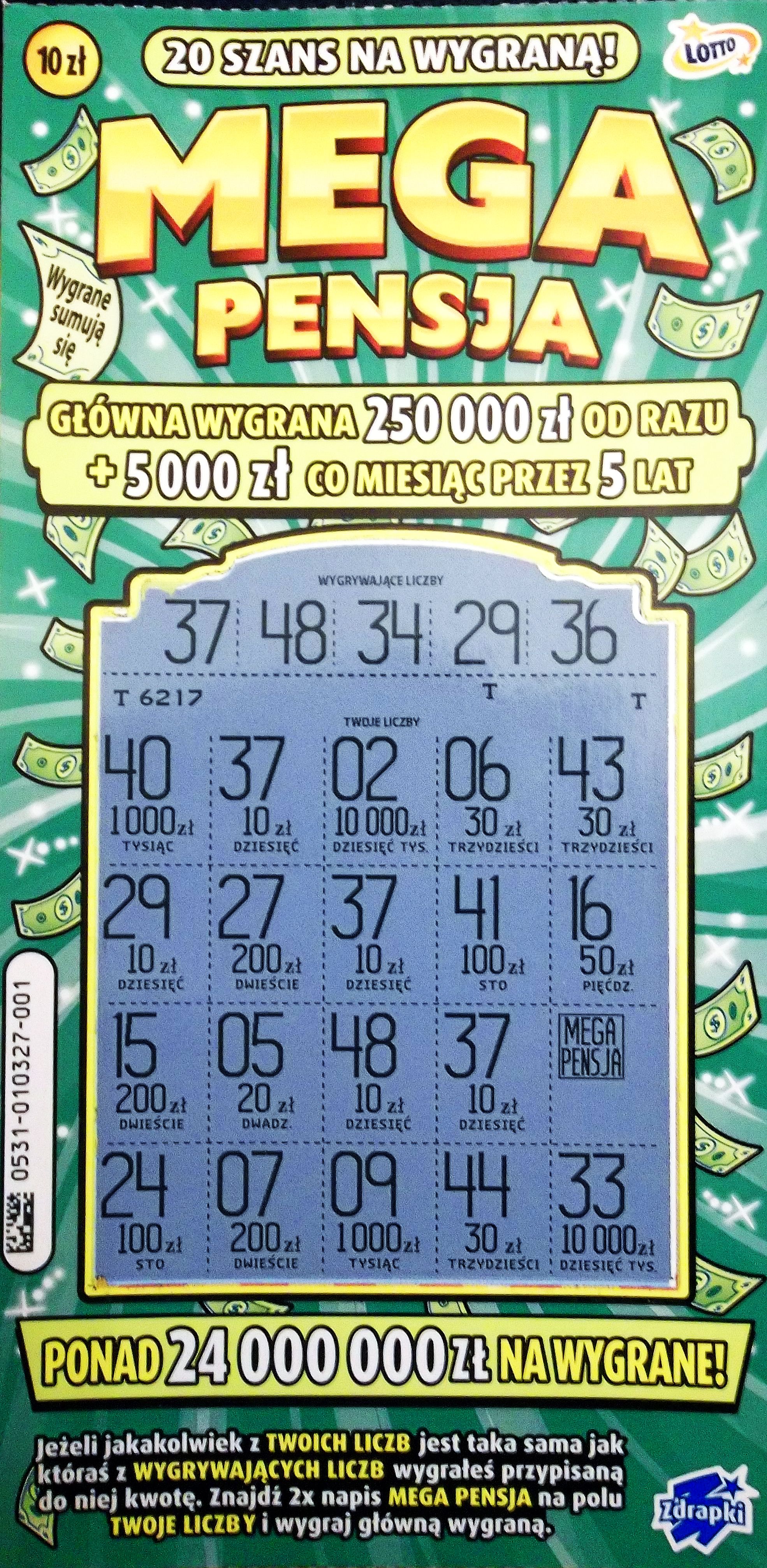 Wczoraj nie miałam już nic brać ze zdrapkomatu, ale jakoś mnie korciło, żeby wziąć Mega Pensję