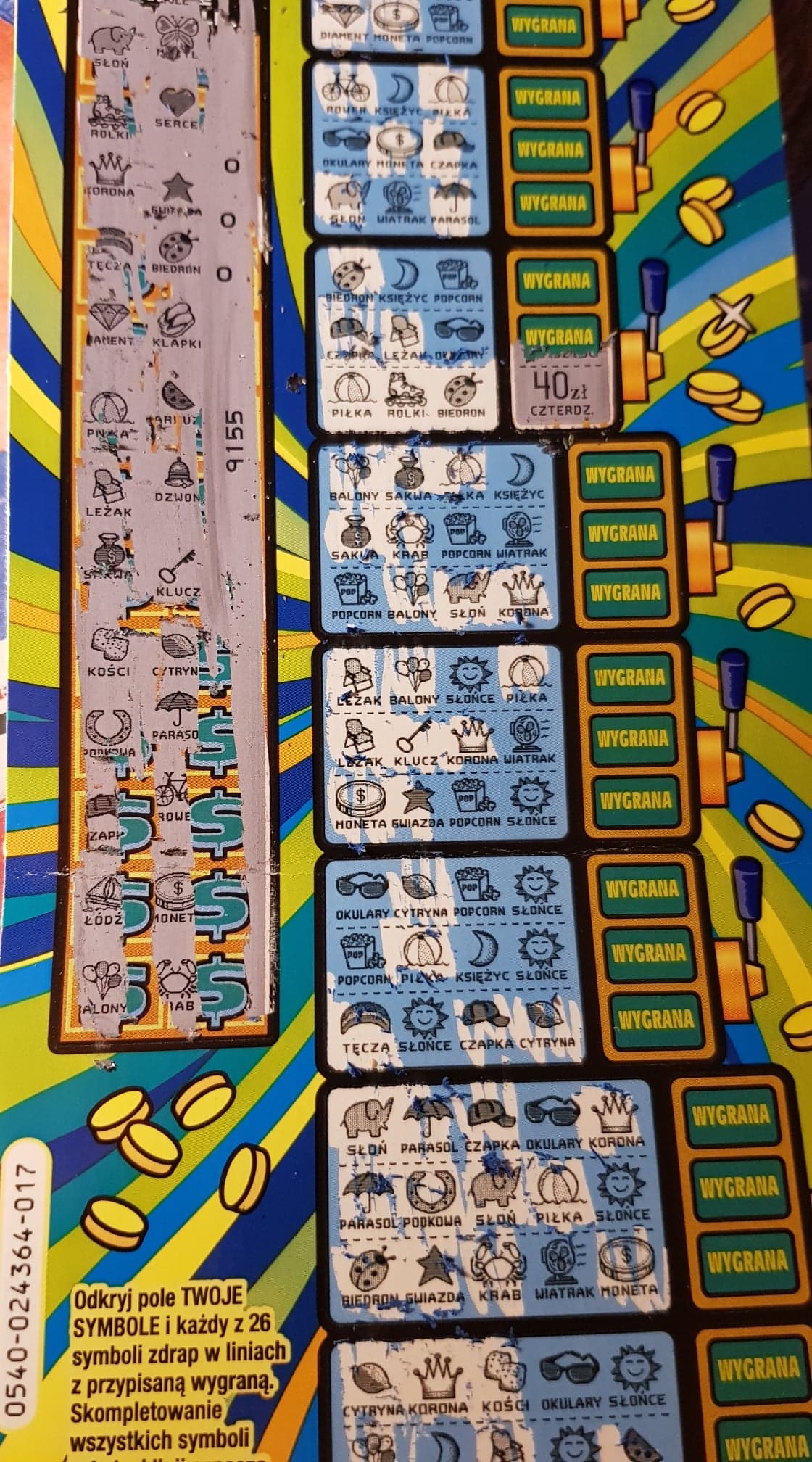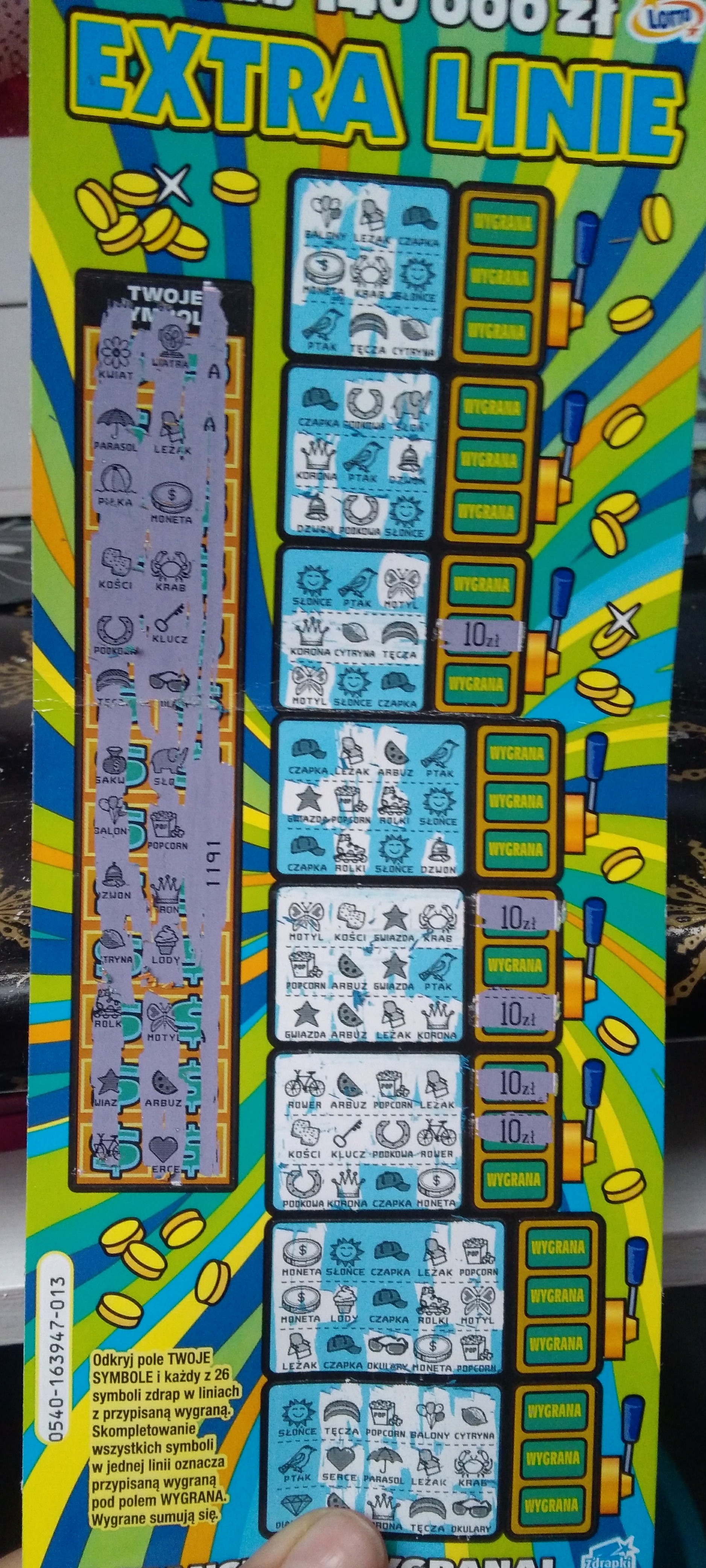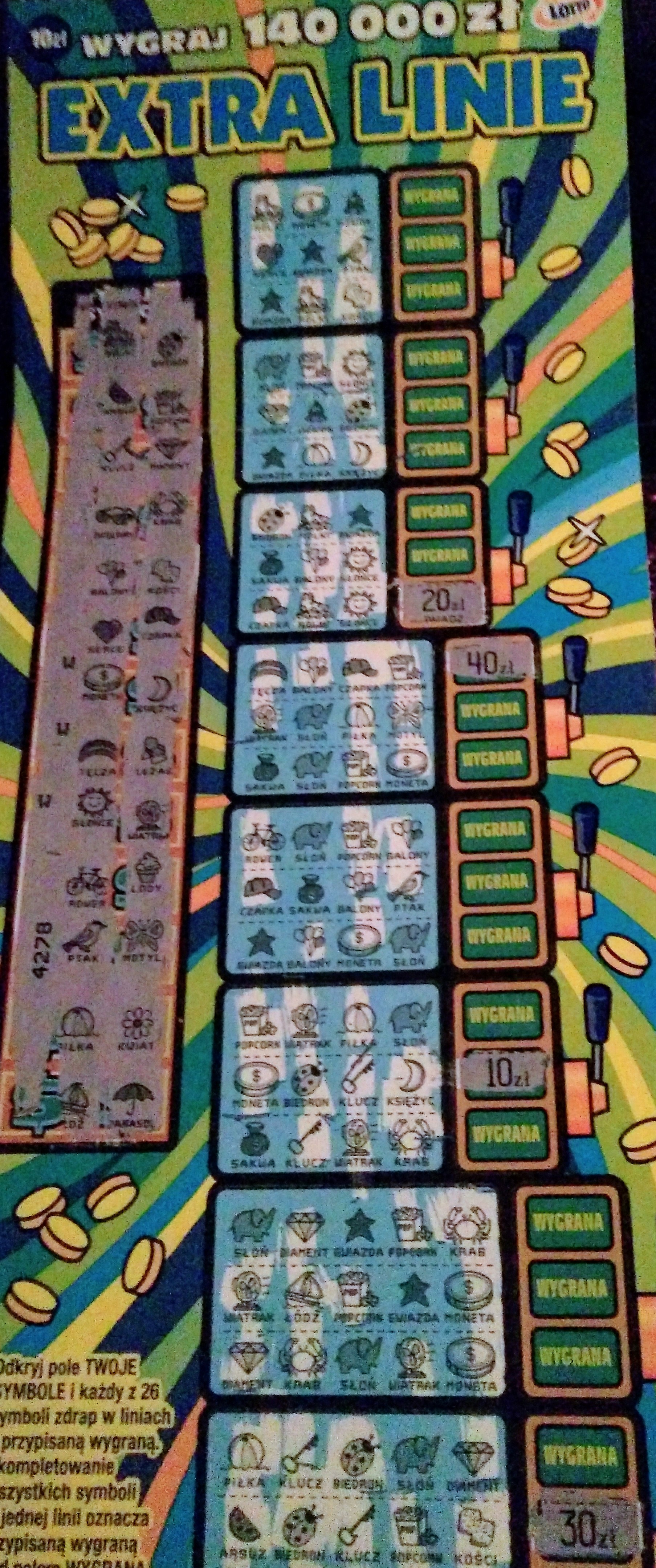 Kupiłem resztę i w 04 było jeszcze 40 zł. Rekord w liniach. Ale mogłem brać 18, 19 i 20, bo jednej 30 brakuje, ale tych zdrapek już nie ma