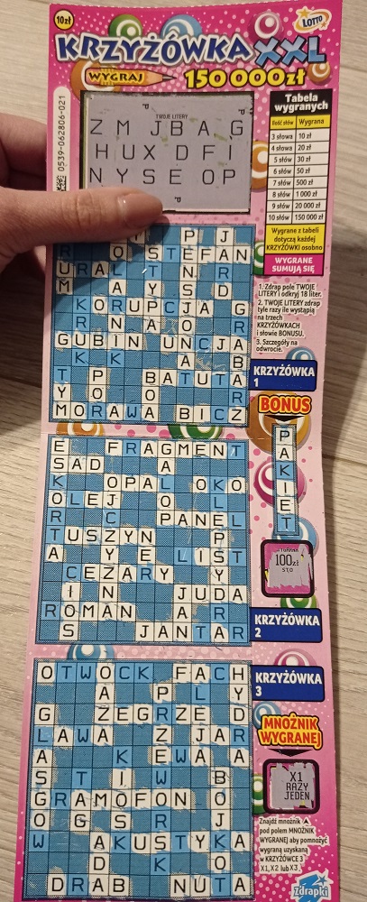a mianowicie mam 4 słowa w środkowej krzyżówce co przekłada się na 20 zł wygranej i literki kontrolne OOO, ale po zdrapaniu całej warstwy "Twoje litery" okazało się, że litery kontrolne to PPP które są symbolem wygranej 10 zł. Czy ktoś miał podobny przypadek?