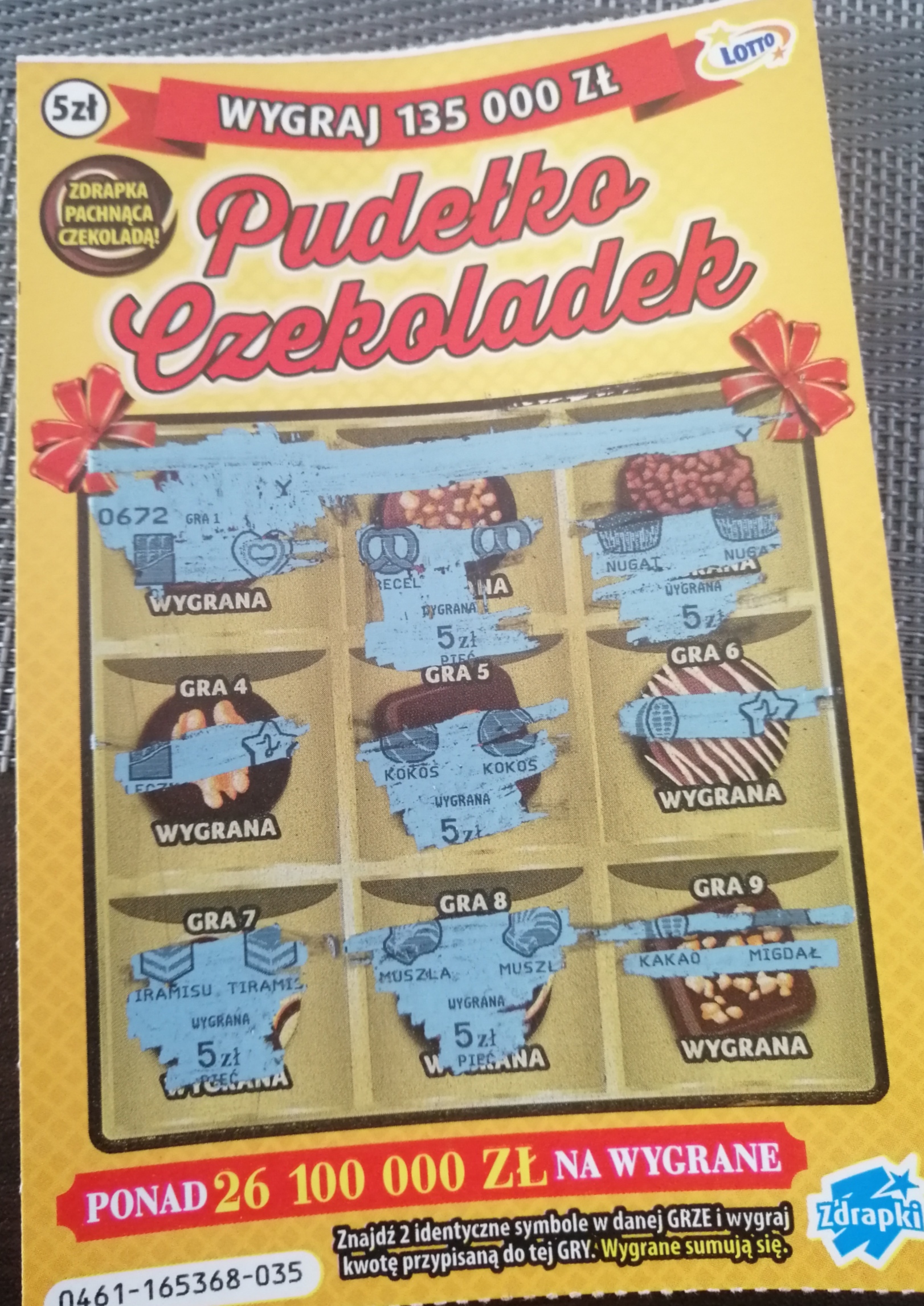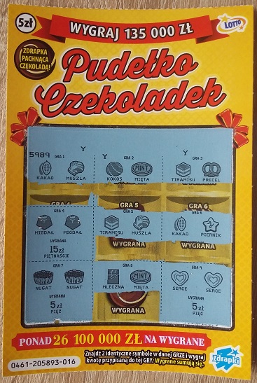 Pierwszy raz od kilku miesięcy spotkałem tę zdrapkę, więc nie mogłem przepuścić takiej okazji i kupiłem jedną sztukę. Trafione 25zł