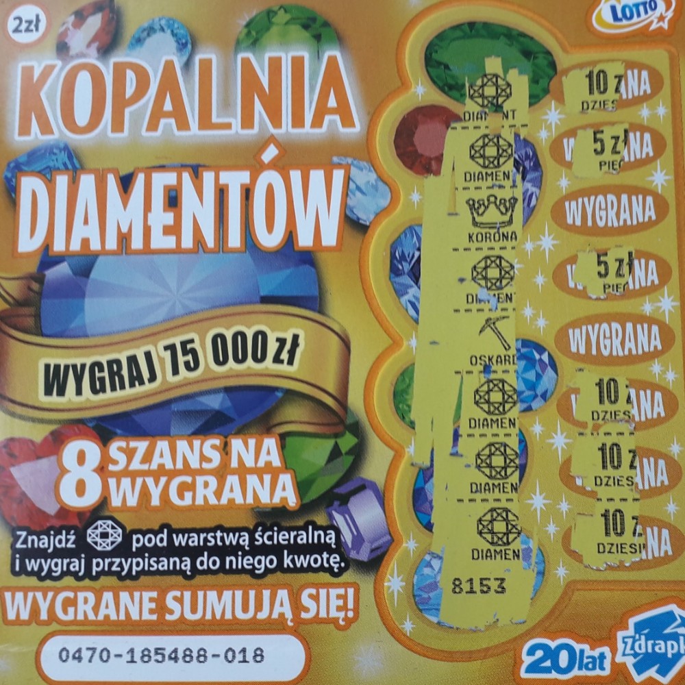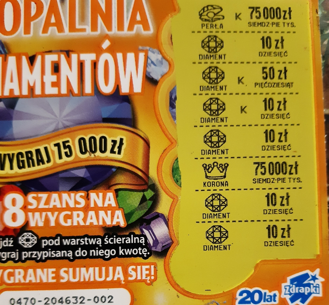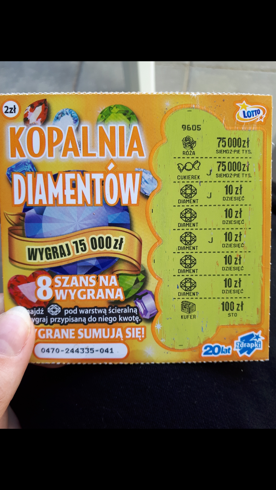 Dzięki, passa i u Ciebie wróci. Czy skupiasz się na jakiejś zdrapce / dwóch etc.? Ja tak samo jak dwa lata skupiłem się dokładnie na 3 zdrapkach i reszta mimo, że korci - nie będę już kupował, np. Góry Kasy - może z 1-2 szt. jak spotkam czarne. Dwa lata temu ta konsekwencja i oczywiście ogromny fart przyniosły jakiś sukces.