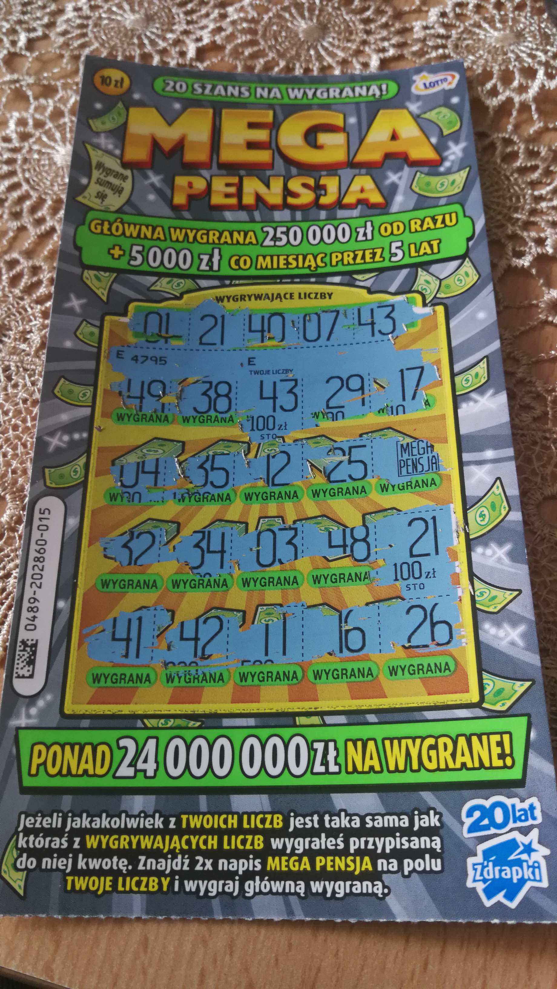 Jestem na nowym koncie ( wcześniej Ann 1987) .. szkoda że nie mam zdjęć ale mój rekord to 200 zł w premii i kilka lat temu 1000 zł w kaskadzie ( liczba obok i byłaby główna;^.. też ostro gram ale z marnym skutkiem .. dziś widziałam już kolor fioletowy mega pensji więc szary schowali .. później pójdę jeszcze wymienić wygrane zdrapki może akurat ja coś trafię w końcu ..