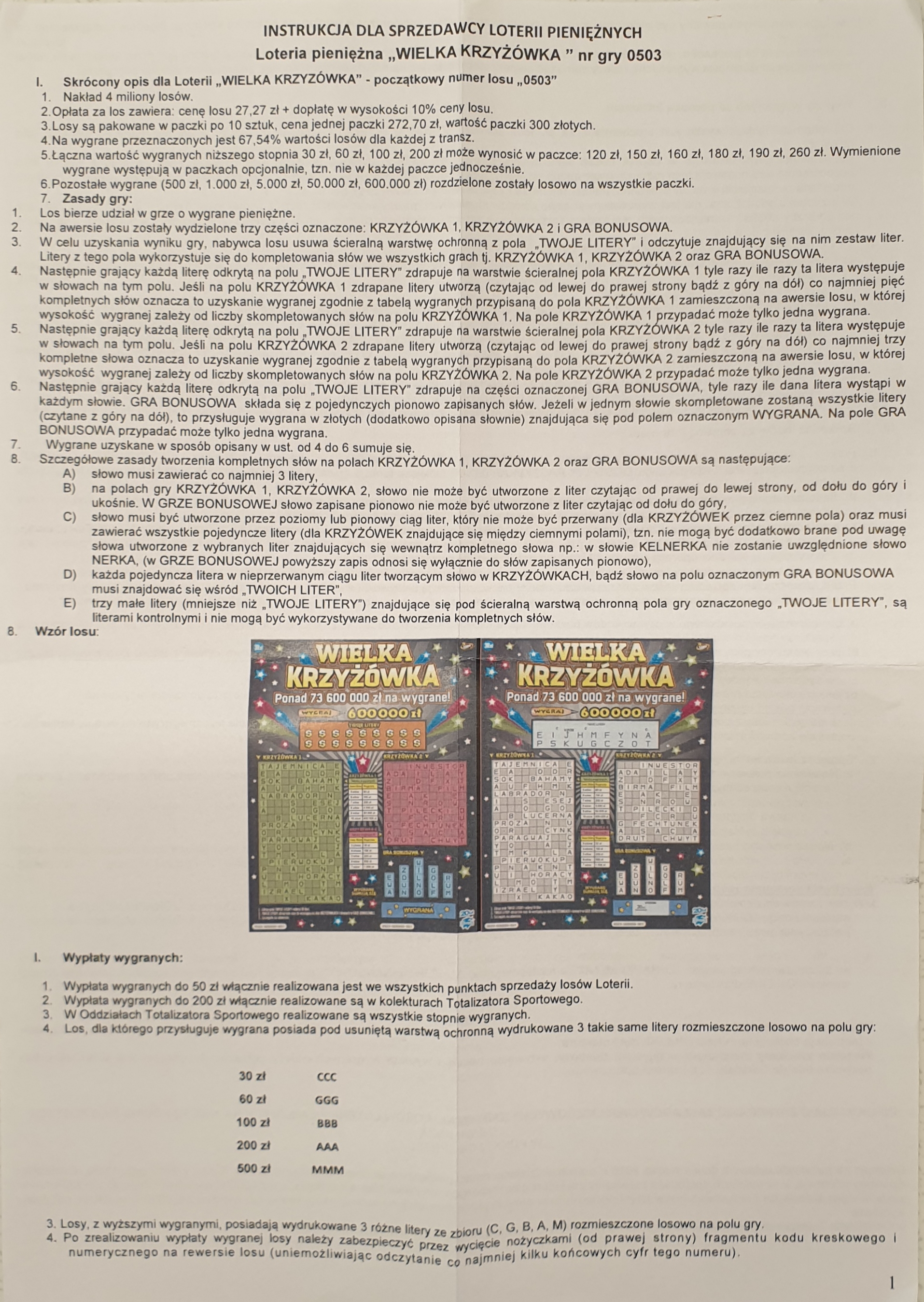 Dziś kupiłem 1 szt. i jak zwykle się zawiodłem na krzyżówce. Twórcy tej byli jednak wyjątkowo zachowawczy, bo nawet 1 słowa nie zdrapałem na tej krzyżówce po prawej (a tam jest do wydrapania m.in. zwrot). Serio ? W Krzyżówce za 3 zł dają przynajmniej 2 słowa skompletować a w zdrapce 10x droższej żadnego ? No i oczywiście klasyka: wśród literek brak A a 90% słów literkę A zawiera (już wzrokowo widać, że Krzyżówka jest przegrana). Jedynie krótkie 3 literowe słowa nie mają A, ale i tych nie da się ułożyć, bo brakuje z kolei innej literki. Do kosza z tym dziadostwem i nie chcę go więcej widzieć na oczy !