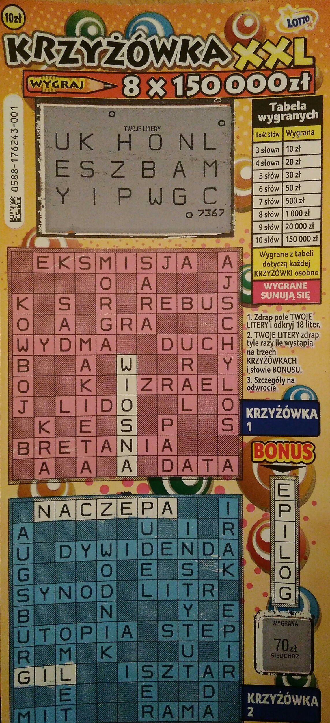 W sobotę zauważyłam, że załadowali przegródkę w zdrapkomacie z XXL-ką, która ostatnio była pusta