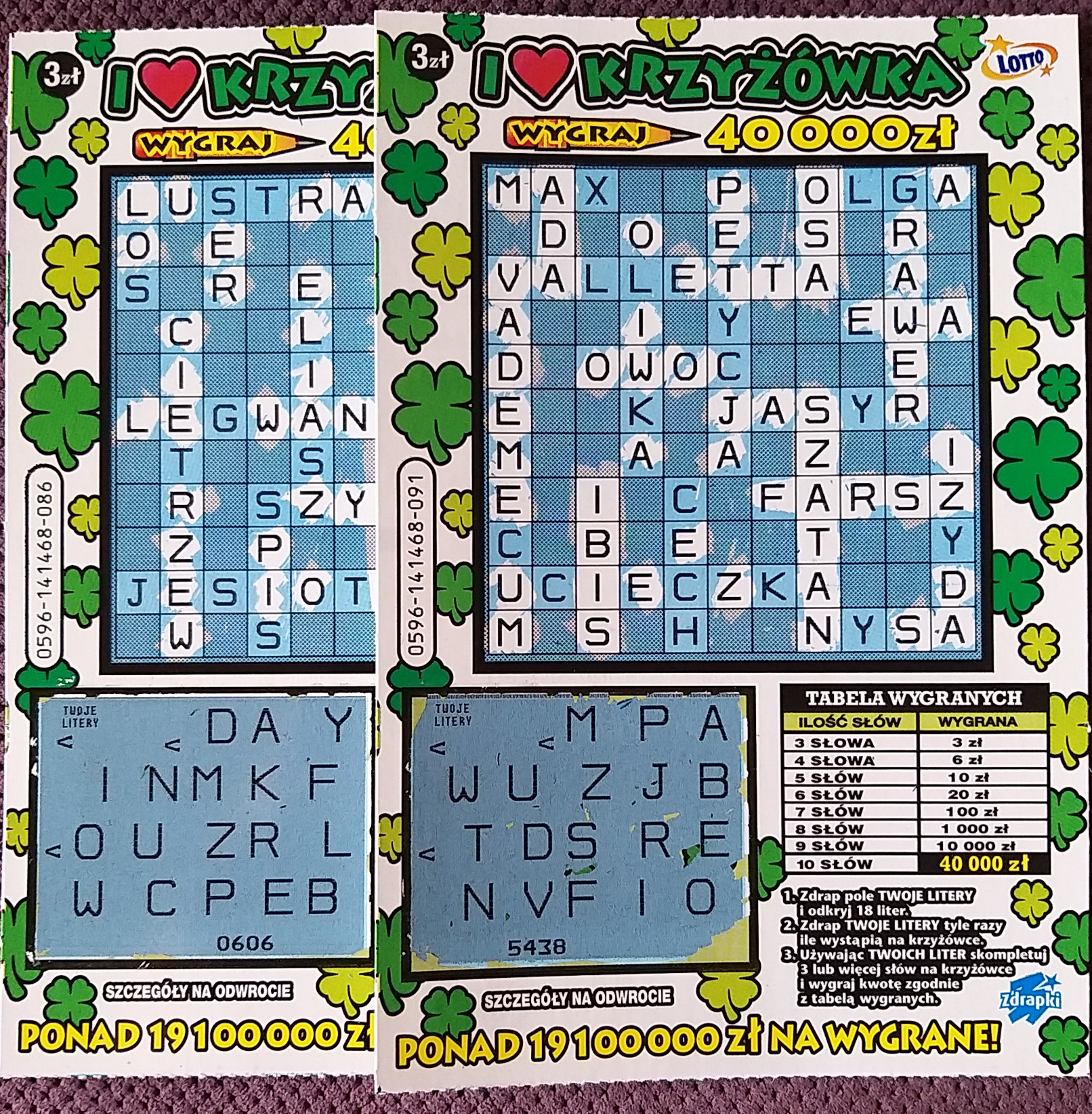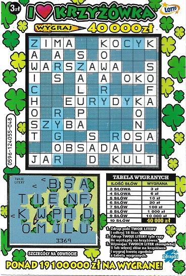 Hmm nie przypuściłbym że tak blisko będą te 20-tki, do tego w 088 i 089 było po 3 zeta, no ale jeszcze z 60 zdrap mi zostało z tej paczki, a literki przez te krzyżówki mam ciągle przed oczami