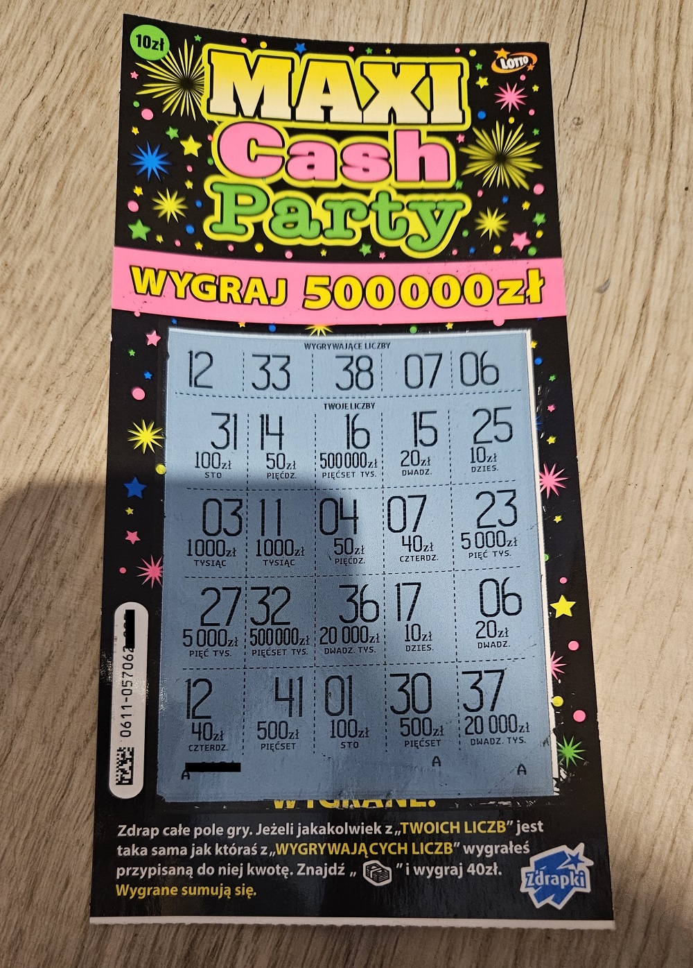 Dzisiaj znów wziąłem zdrapkę z nr 12 do mixa i wpadło 40 zł!