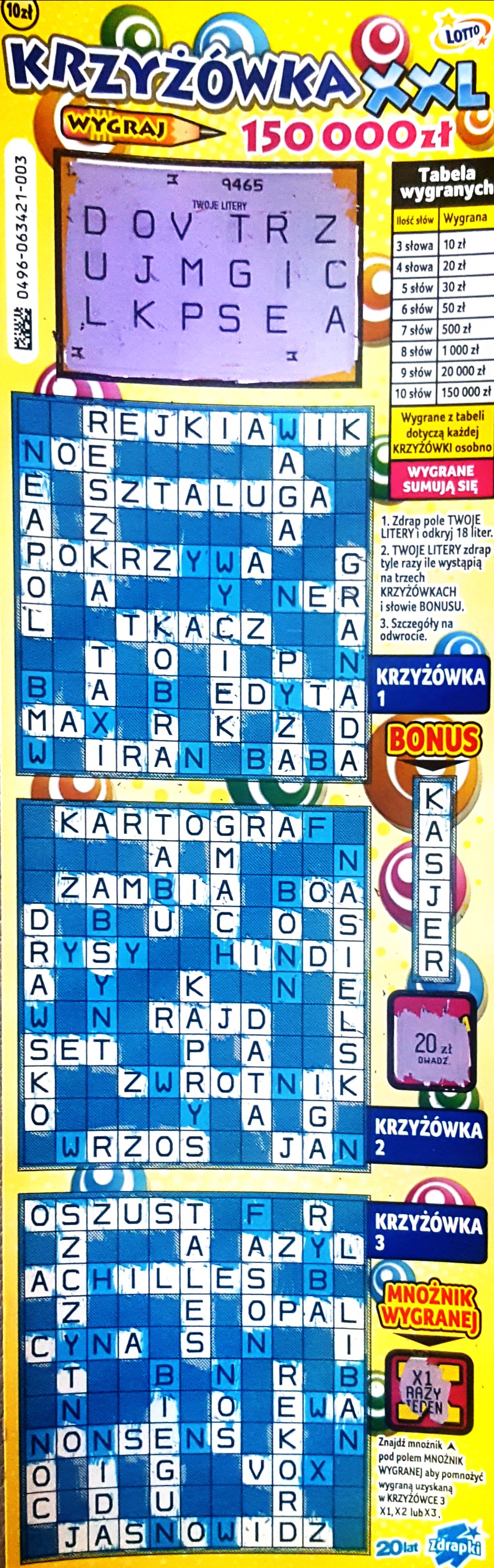 Coś ostatnio nie mam szczęścia z tą zdrapką, same pustaki nr 006, 012, 014, 015, 021. Czas się przerzucić na coś innego
