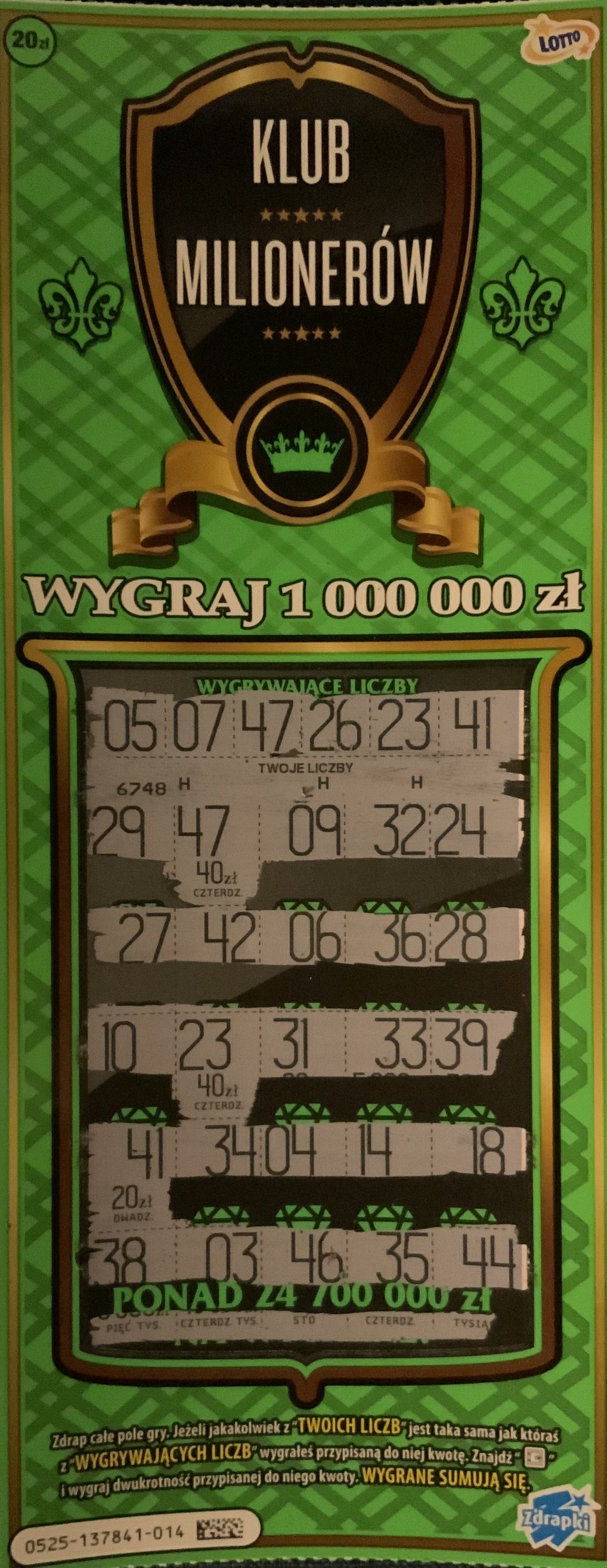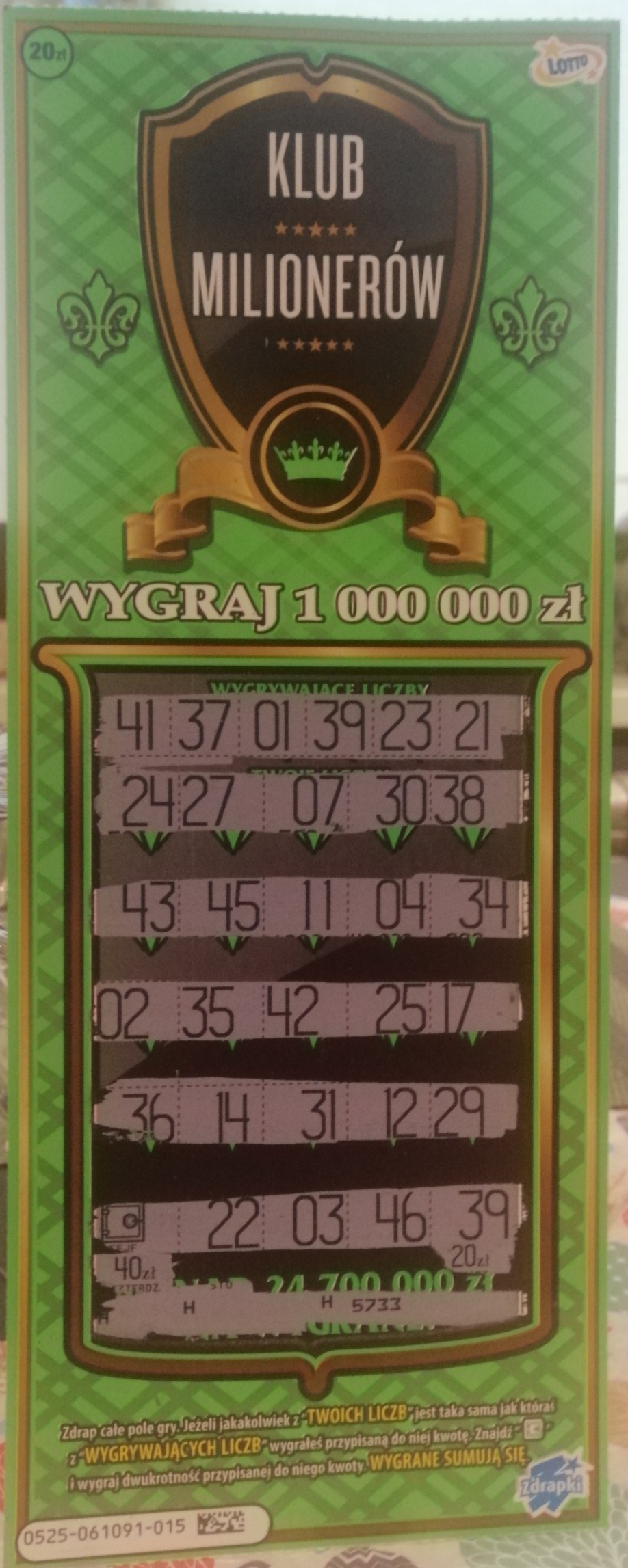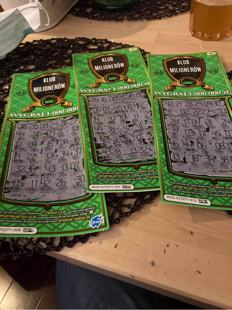 Jak mowilem nie biorę całych zdrapek wziąłem pół z otwartej paczki klubu milionera i jest wynik