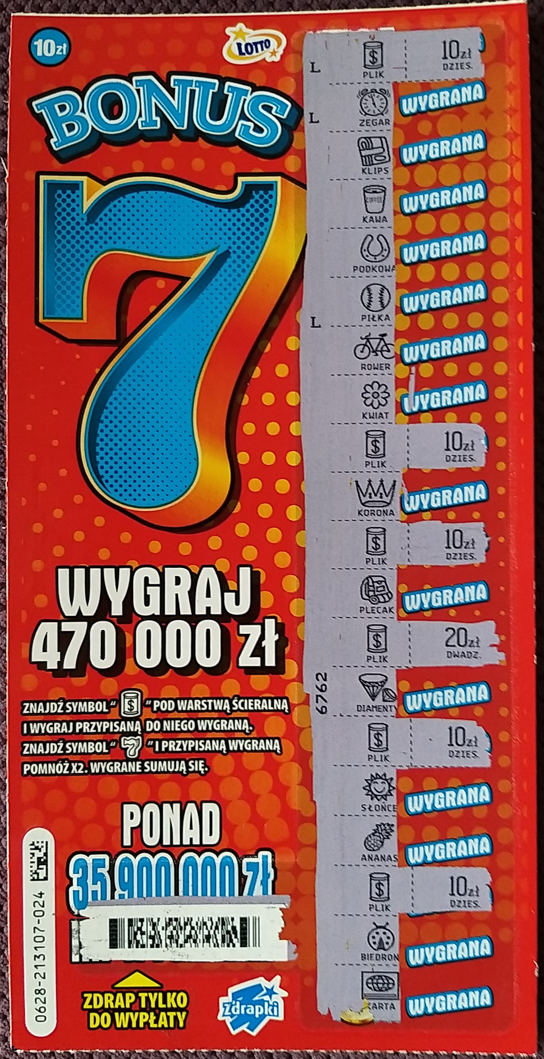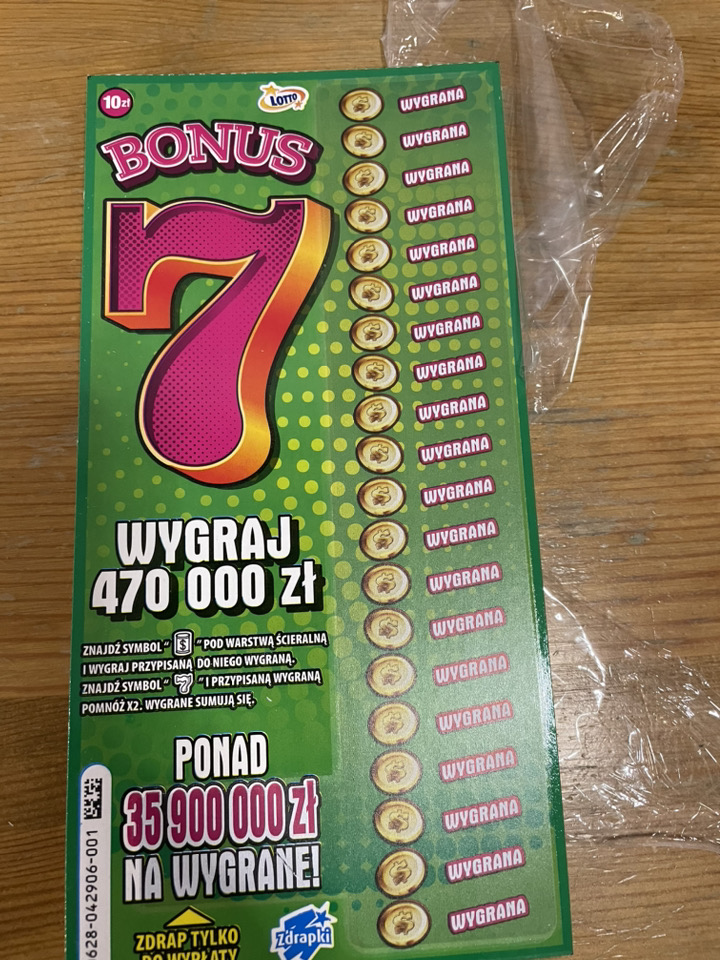 I znowu zdrapkomat ale w innym miejscu, świeżo załadowana paczka bo pierwsza zdrapka 025 pustak, a następna 024-70