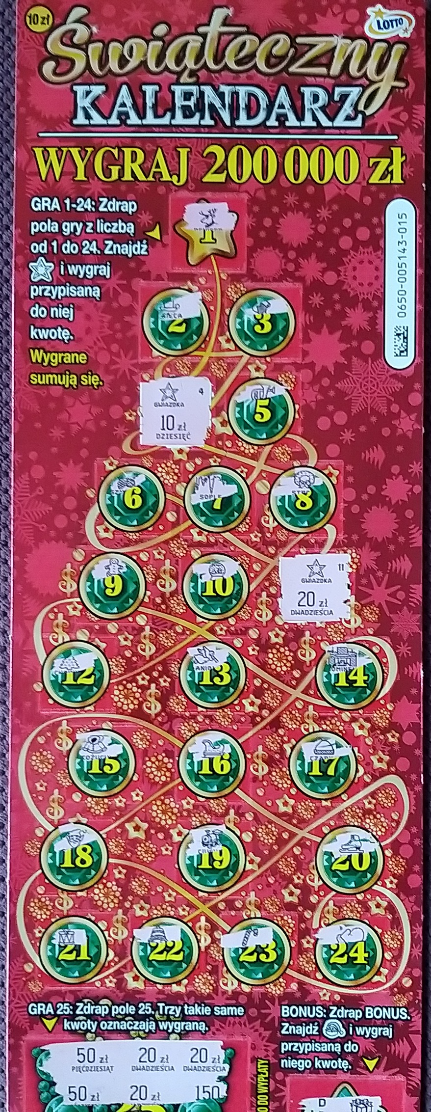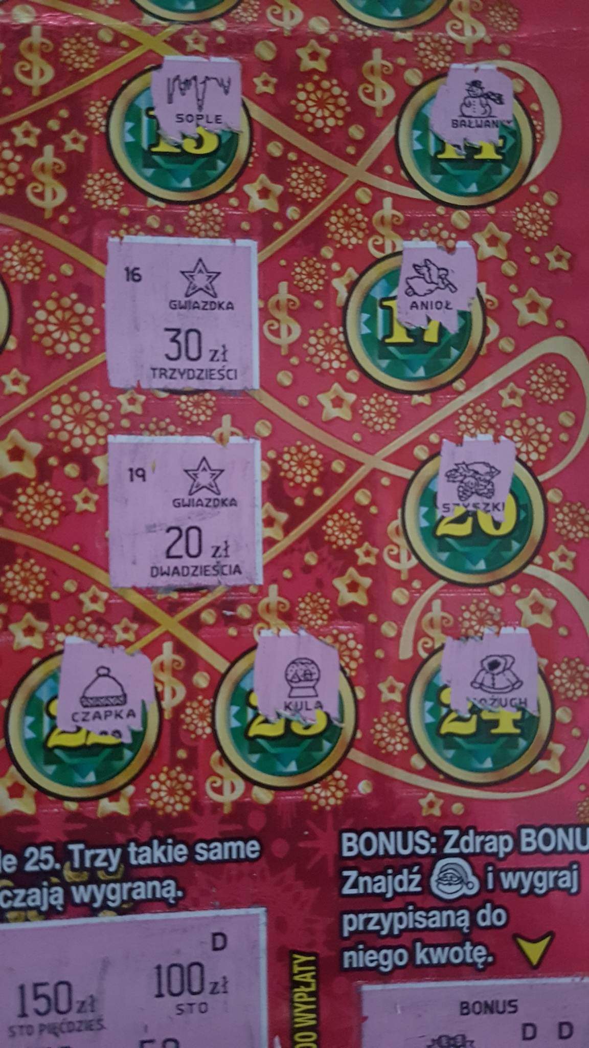 A trafił ktoś z Was kiedyś w tej paczce nagrodę pod bonusem? Wydrapałam tego sporo, były i gwiazdki i 3 równe kwoty, ale bonus nigdy.