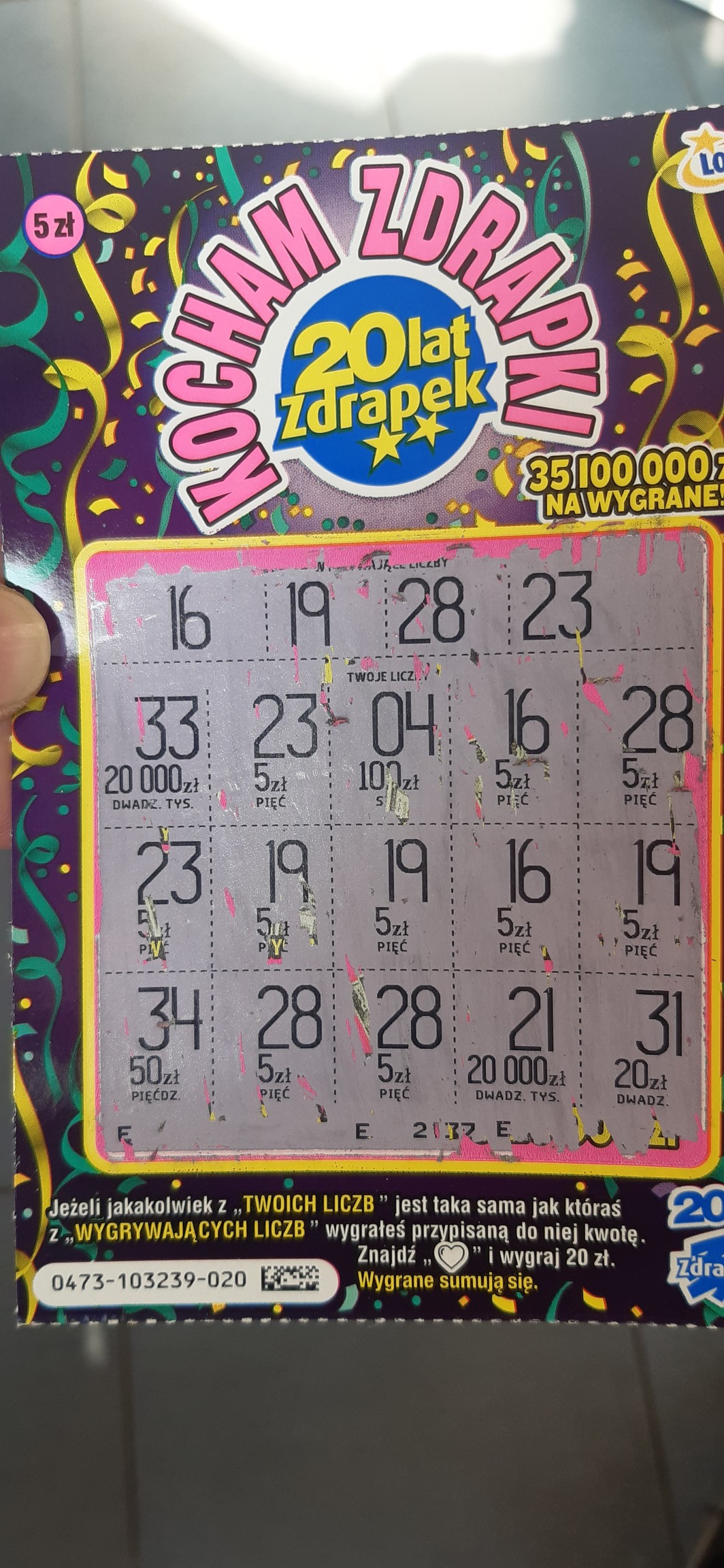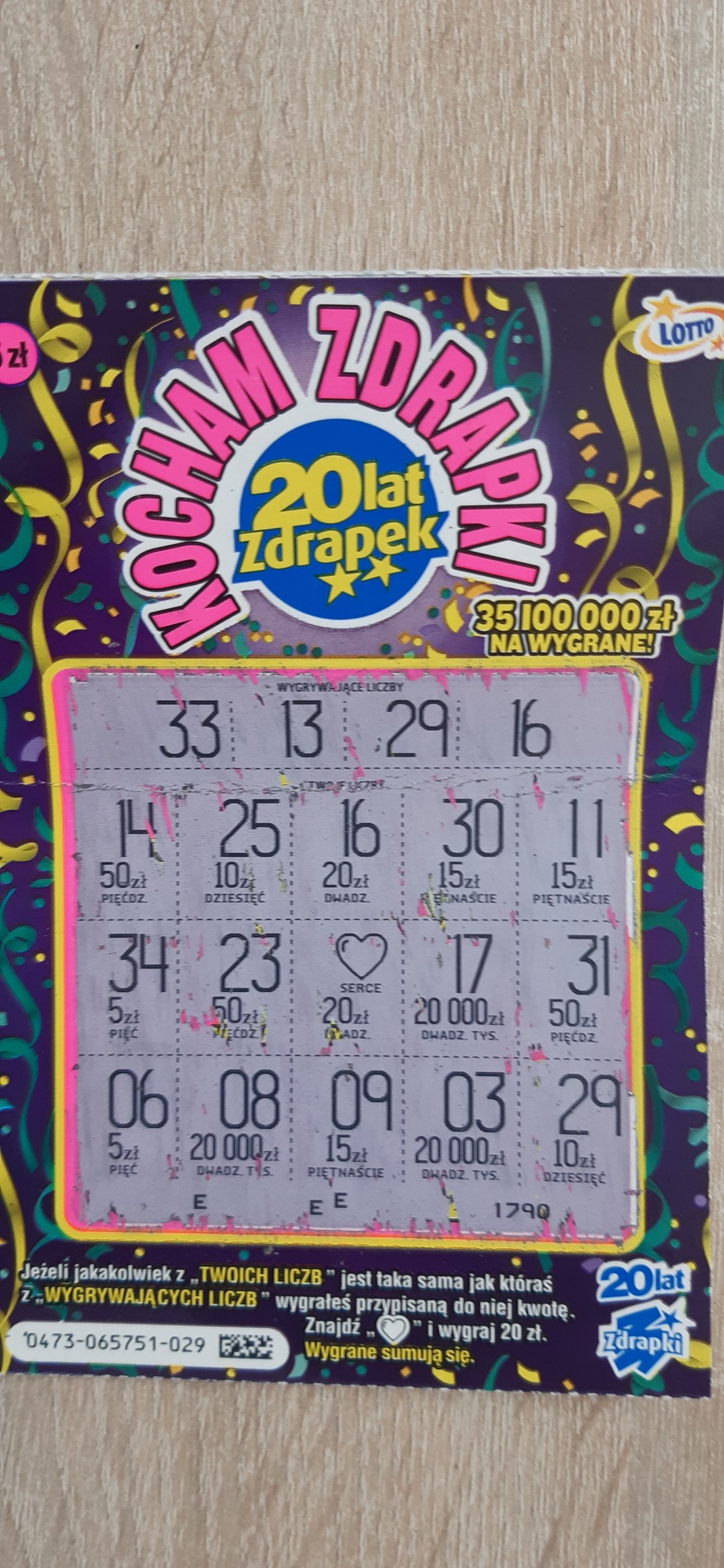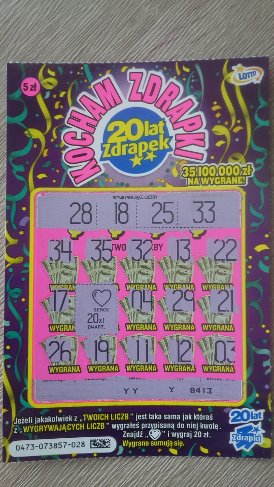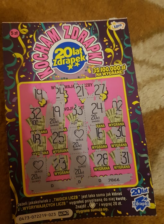 Zdrapka ponad 3 lata w sprzedaży, niedługo zakończenie a mnie dopiero po raz pierwszy trafiło się serduszko za 20zł