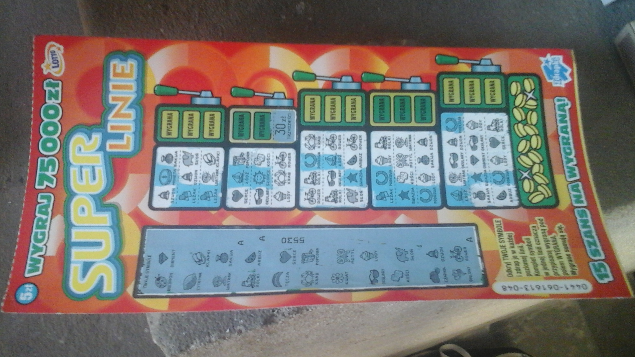 Stwierdziłem dzisiaj, że zastosuję moją starą metodę, czyli jak nie nie idzie wygrać to kupić najmniej lubianą zdrapkę i tym akcie desperacji wziąłem super linie, nawet to nie pomogło... kolejny pustak