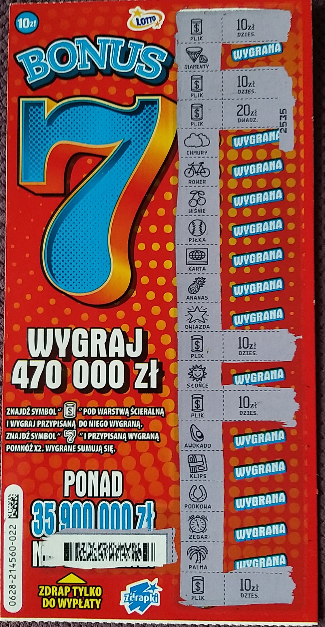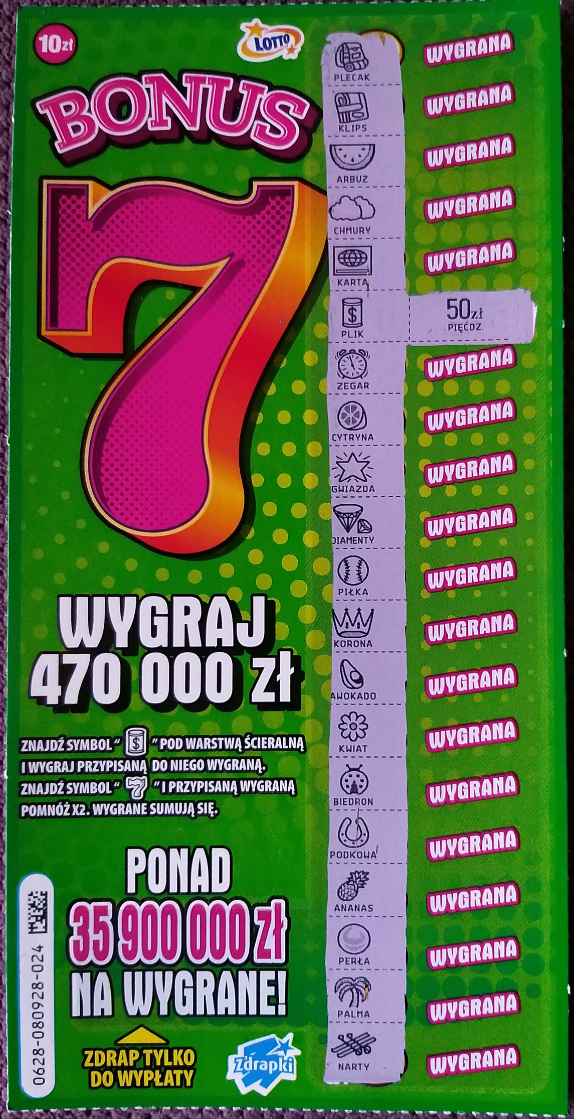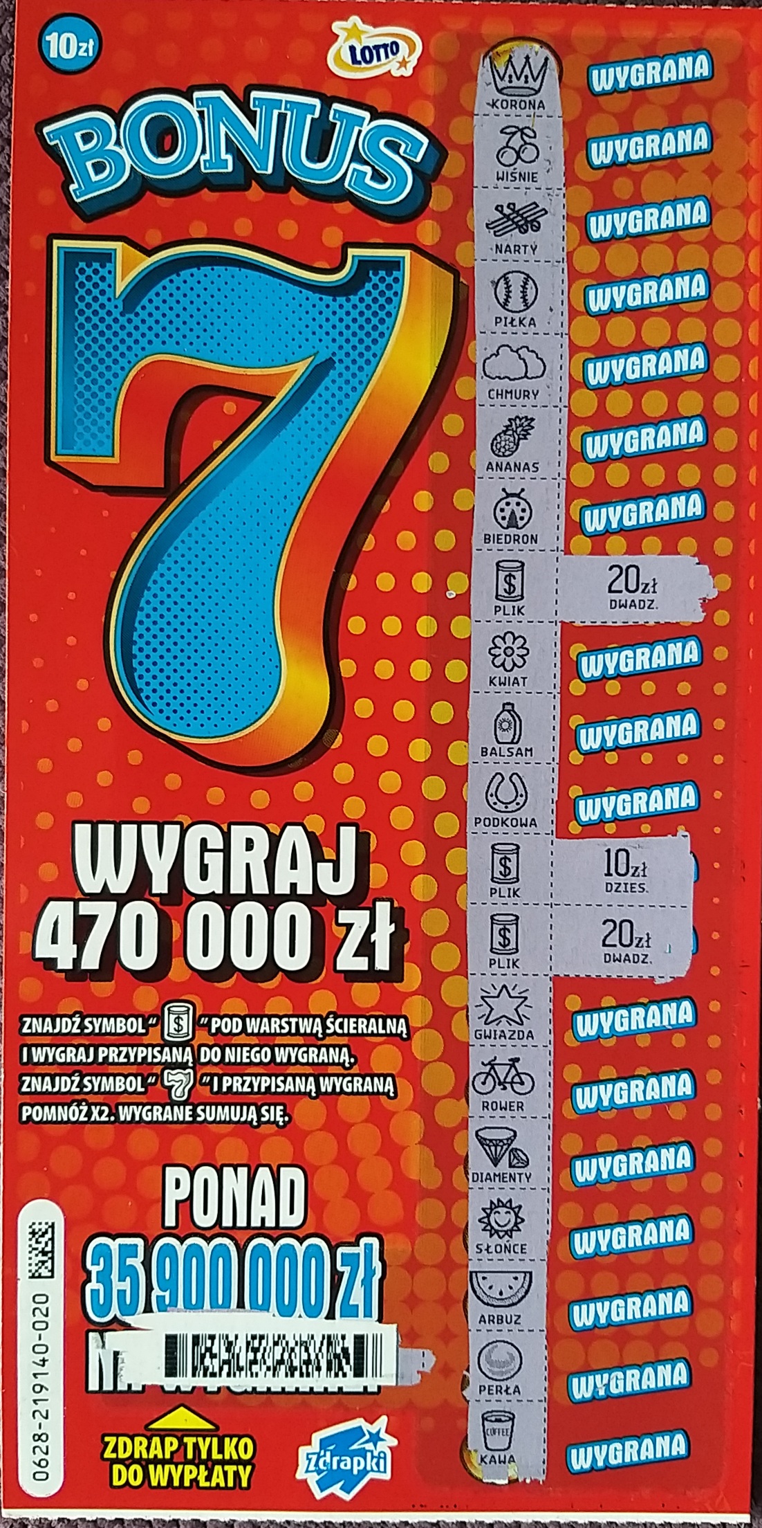 A tutaj mój dzisiejszy okaz przy dwóch sztukach udało się wydrapać w nr 20 -30 zł oraz w nr 21 "oczku", taki oto fajny rarytasik