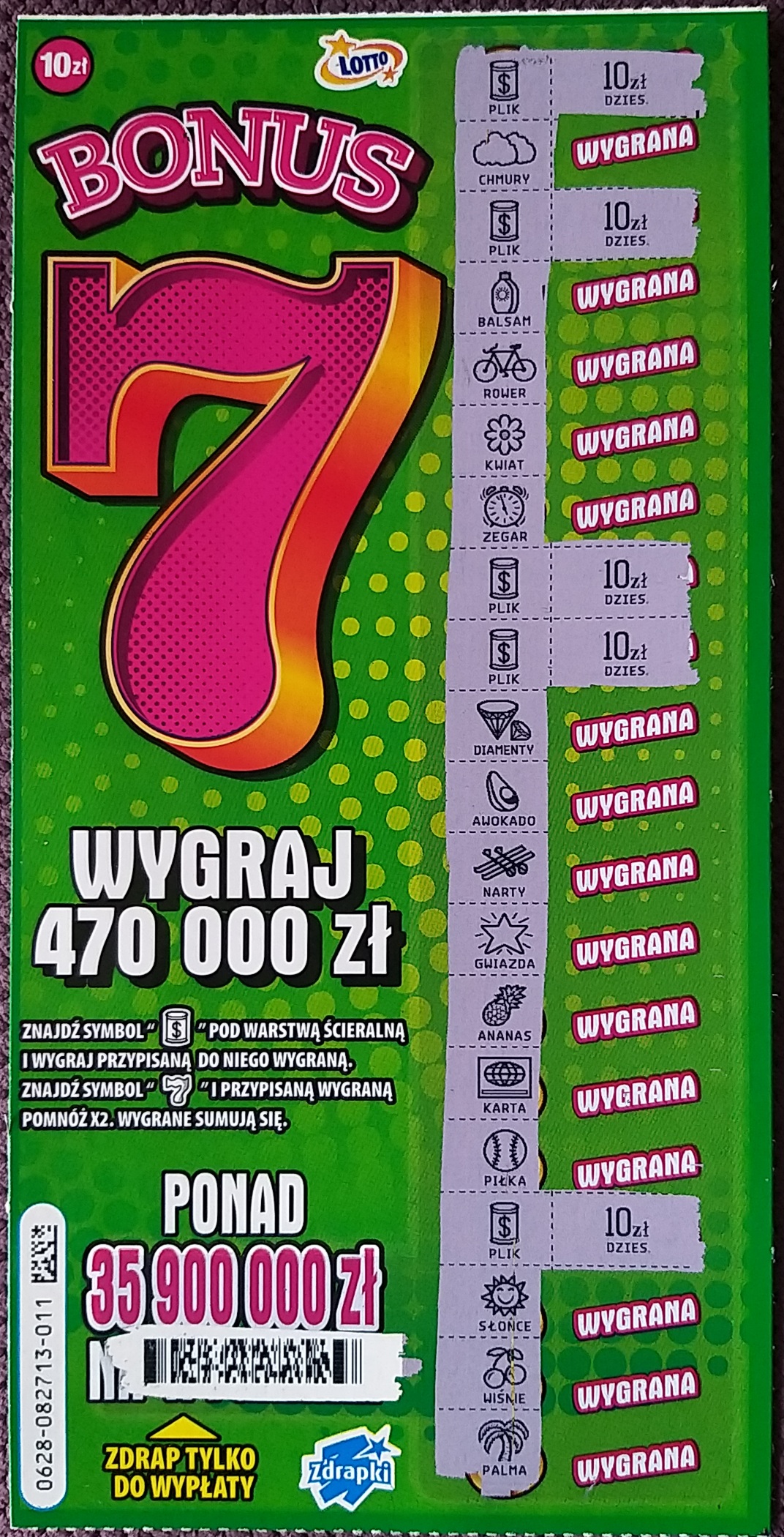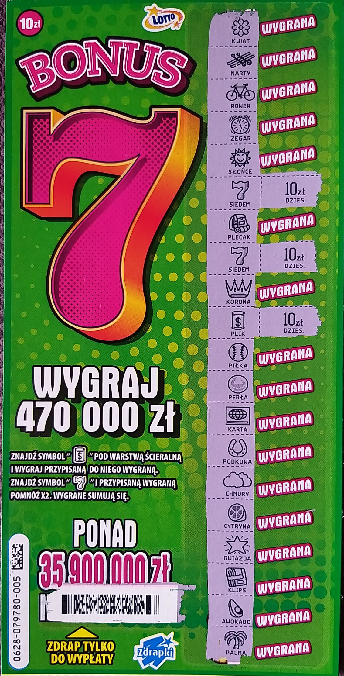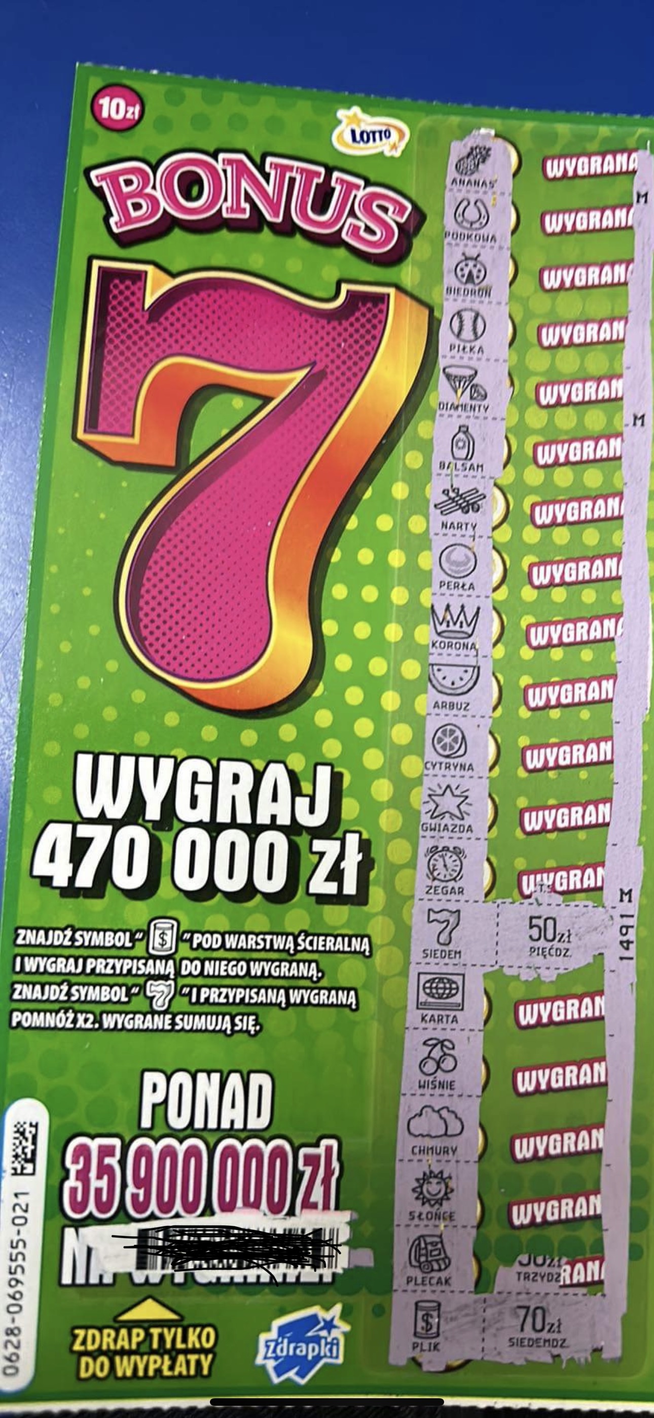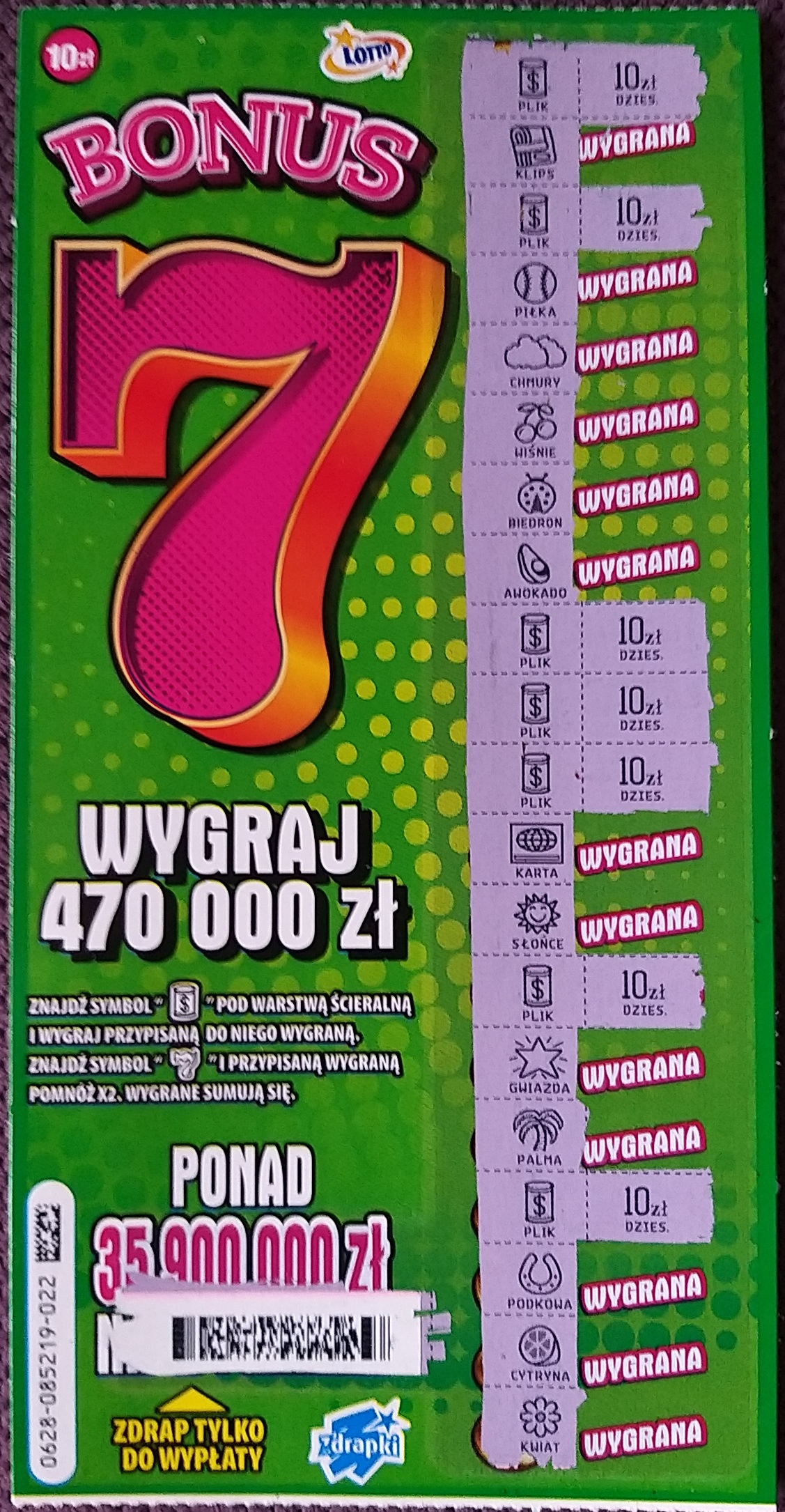 A tutaj mój dzisiejszy okaz przy dwóch sztukach udało się wydrapać w nr 20 -30 zł oraz w nr 21 "oczku", taki oto fajny rarytasik