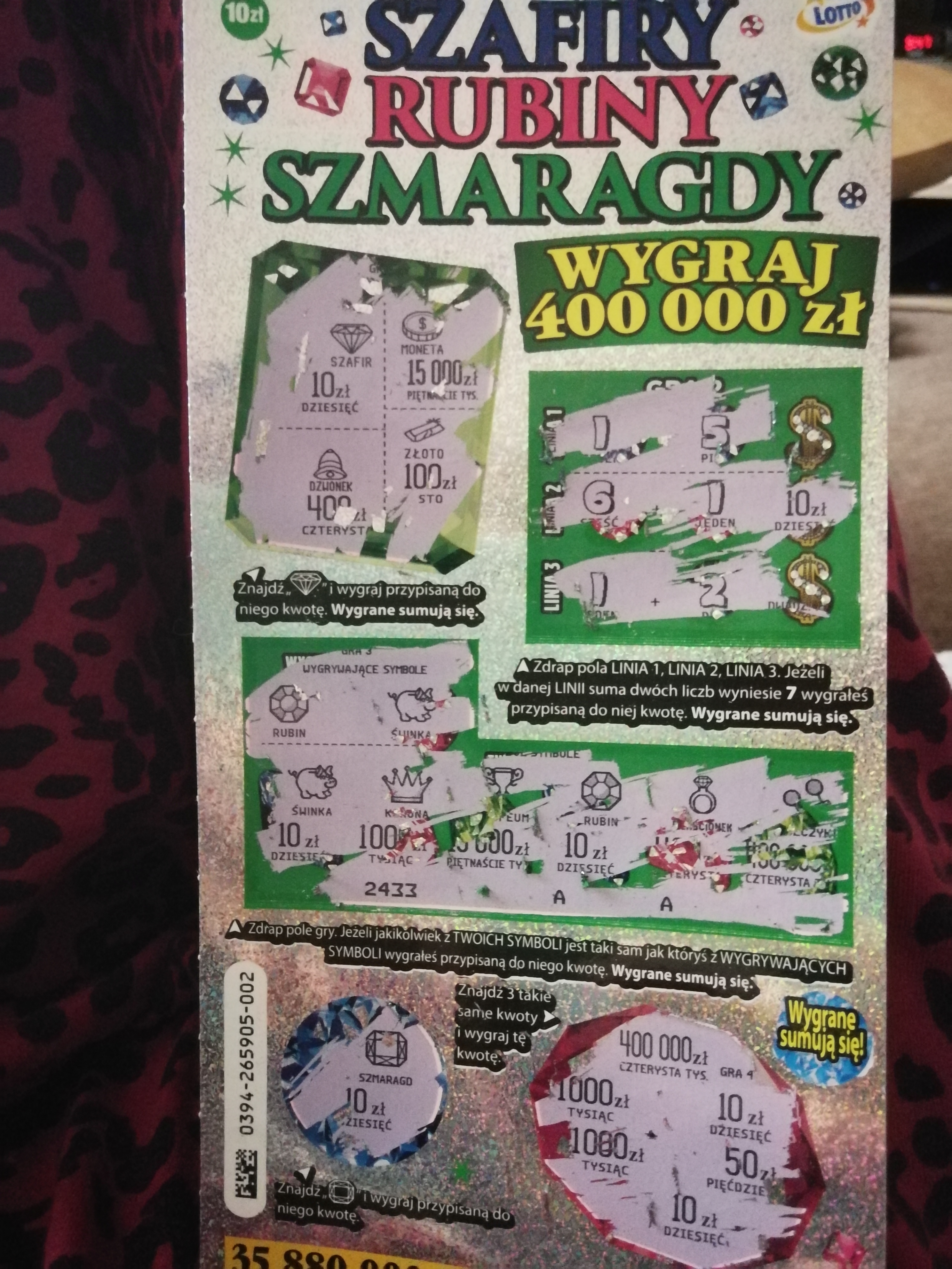 Przez cały tydzień wybierałem z paczki po 1=2 szt. (nr po kolei) i bilans tragiczny 8 pustaków i 1x 10zł. czyli 80zł w plecy.