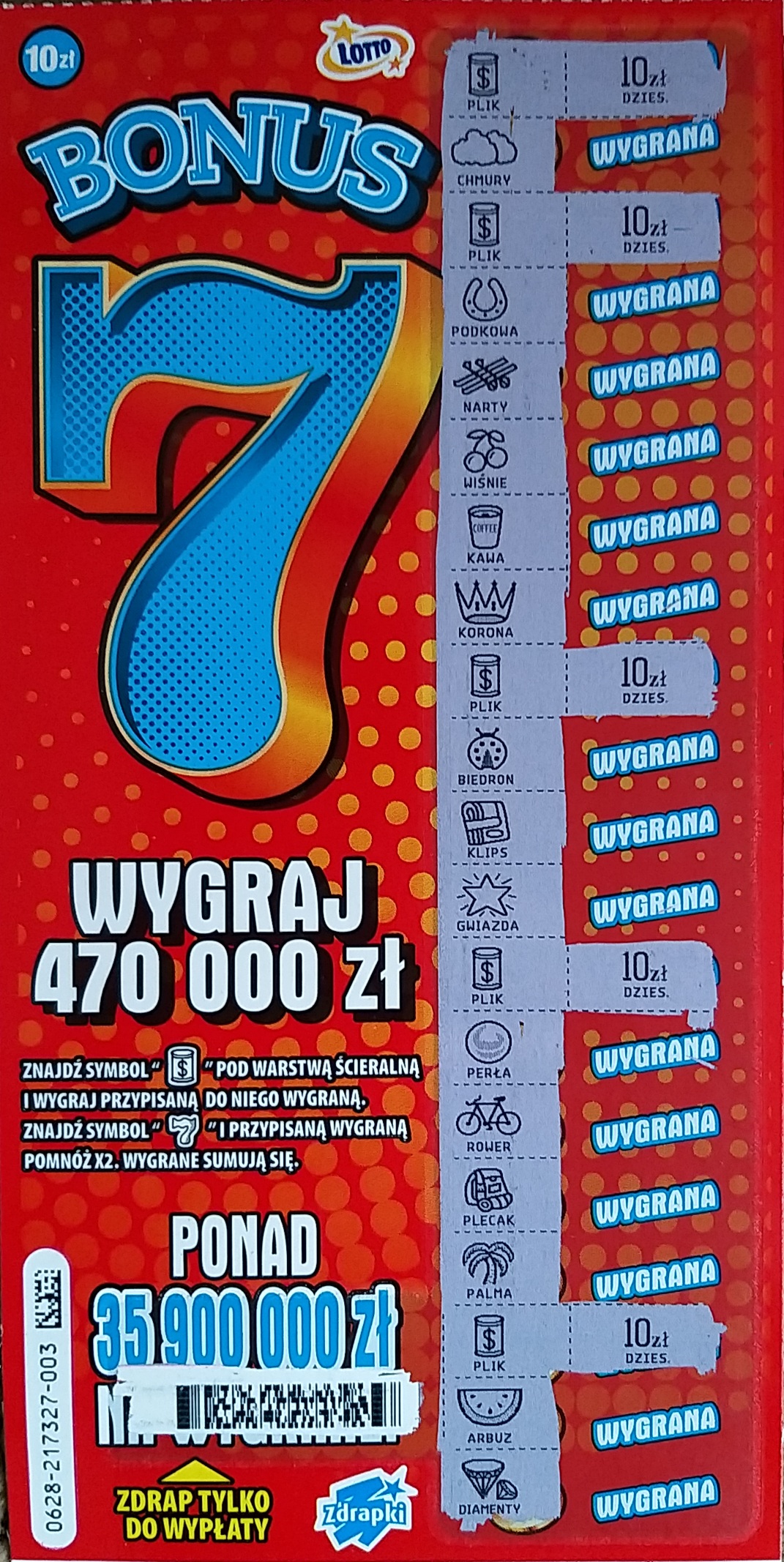 Coś ostatnio Bonus chyba mnie nie lubiał bo bralem po sztuce i pustaczki, ale na week kupilem ot tak z paczki 010 i 015 bo moje numerki się obraziły i traf jest
