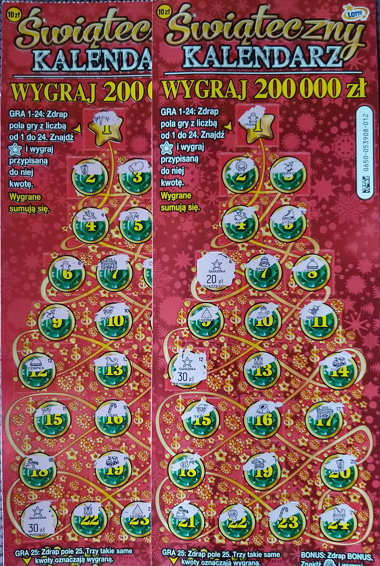 Wczoraj brałem kilka zdrap po 2 sztuki bo uznałem że 13go to dobry dzień i się nie zawiodłem