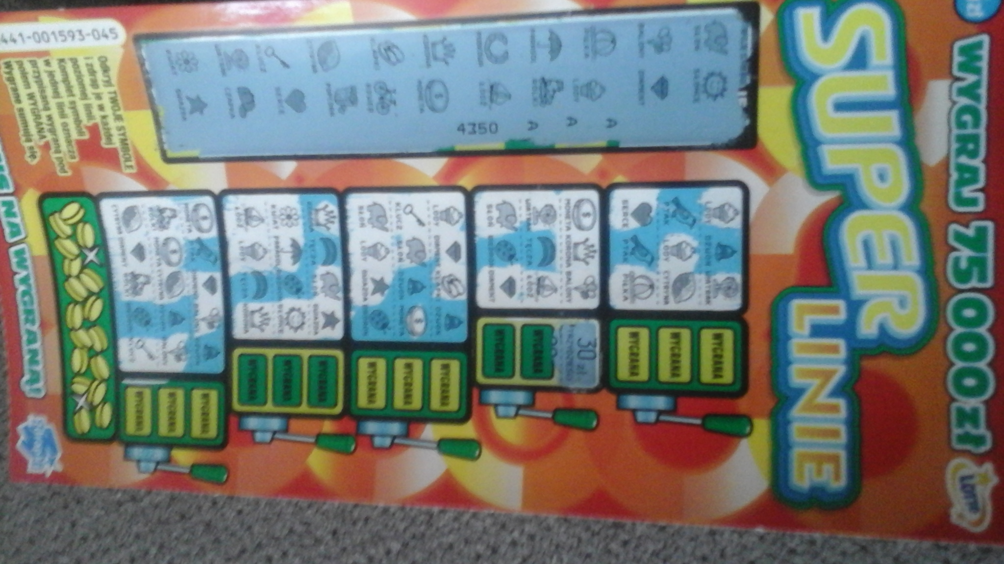 Jak skończę ją skrobać to dam znać. Paczka, w której w tamtym roku trafiłem główną też była jakaś dziwna - w poniedziałek rano po tej wygranej wykupiłem ją do końca. Było tam sporo " piątek ", "dziesiątek" ale chyba z 3, jedna "piętnastka" i stos pustaków.
