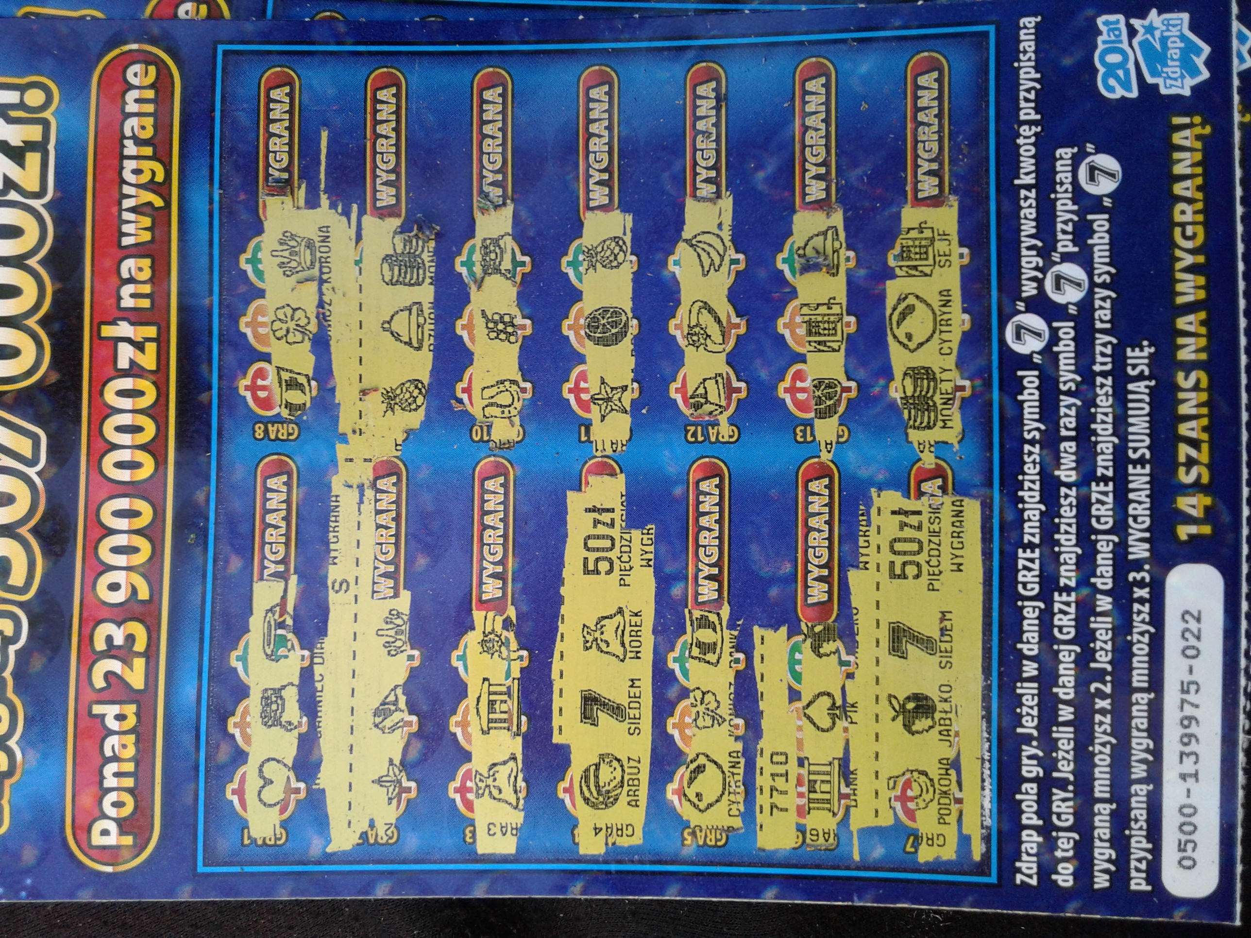 Generalnie nie liczę, ale tutaj chyba z 12 sztuk z których nie wszystkie były pustakami. Generalnie jestem cały czas na plusie jak nigdy. 8-)Sollen pisze: ↑16 sie 2019, 19:44Naprawdę jestem pełen uznania. To żadna złośliwość, ale proszę o szczerość. Ile sztuk tej zdrapki dzieliło tę setkę od poprzedniej ? Bo rozumiem, że wpadła Ci już 5 razy i spoko, masz farta i jest dobrze. Nie moja rzecz ile wydane, ale jestem ciekaw jak bardzo Ci to idzie ; )
