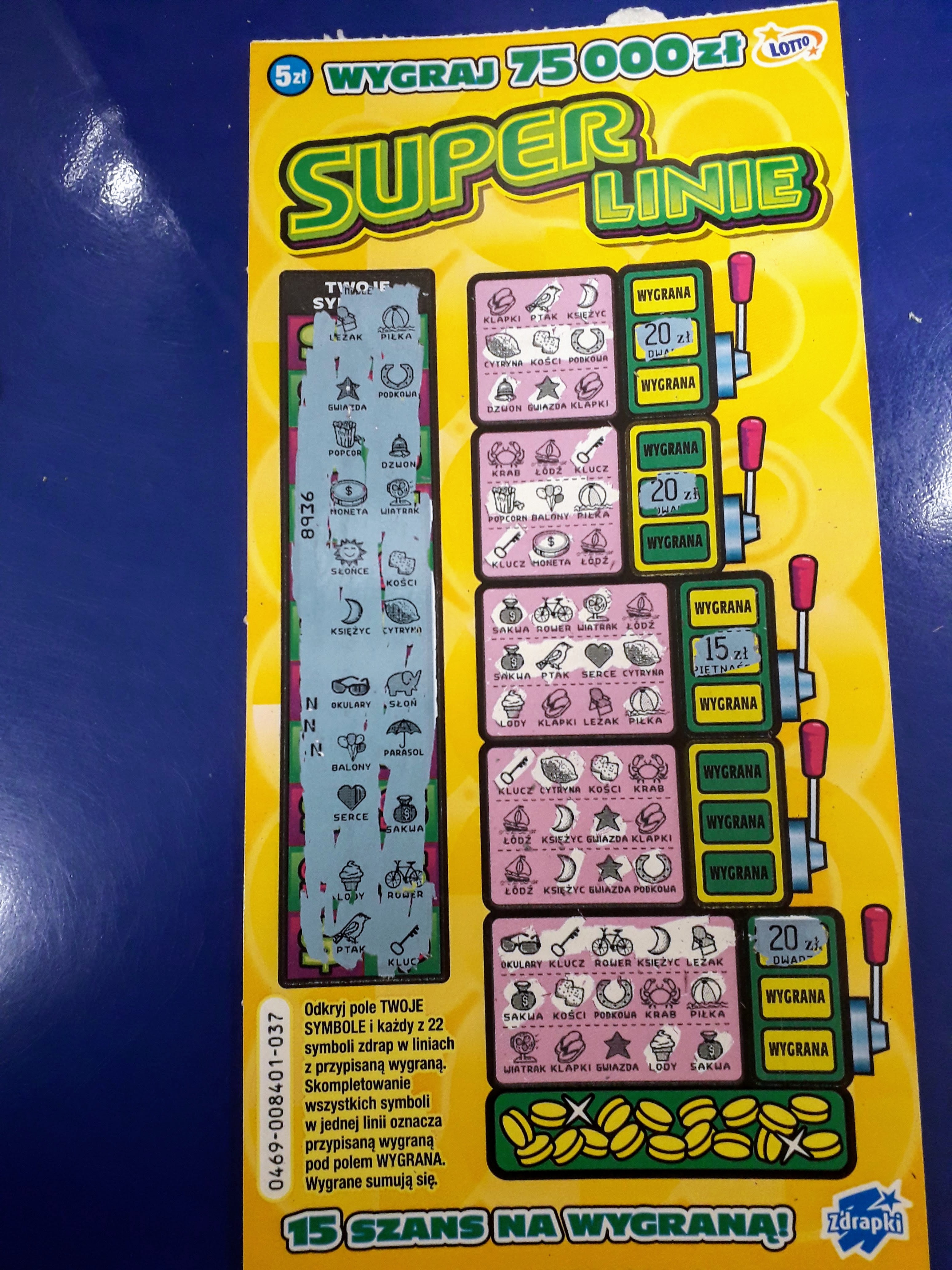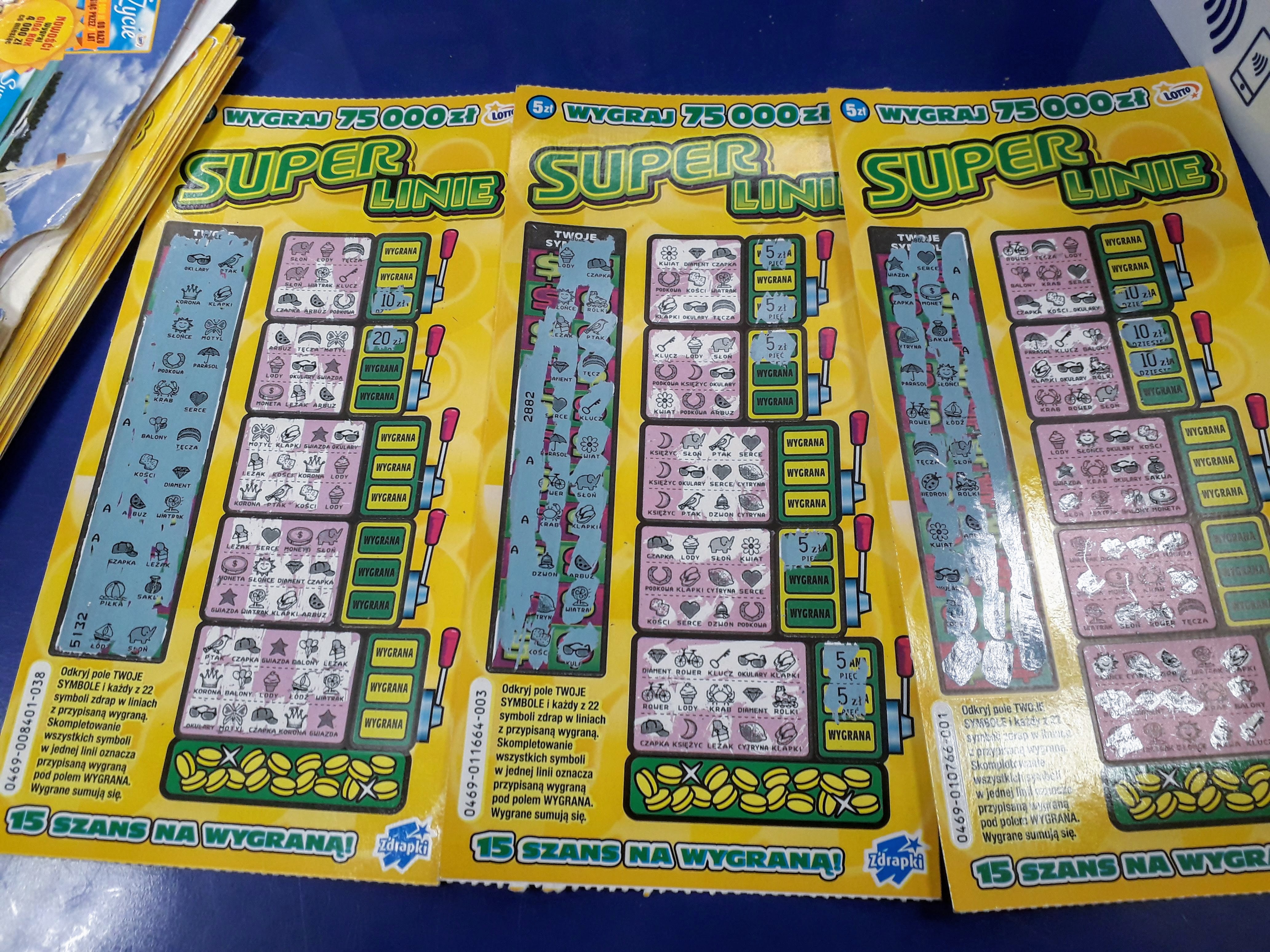 No super linie to już jest totalny ewenement pod względem ciągów pustaków i wygranych. I właśnie niektórzy mają w niej takie ogromne szczęście bo w te właściwe ciągi się wpasują. Mnie się tylko raz udało kupić 3szt w drugiej edycji i wszystkie były wygrane: 20zł, 10zł i 5zł, a tak to pustaków tyle jak z Wrocławia do Glasgow...