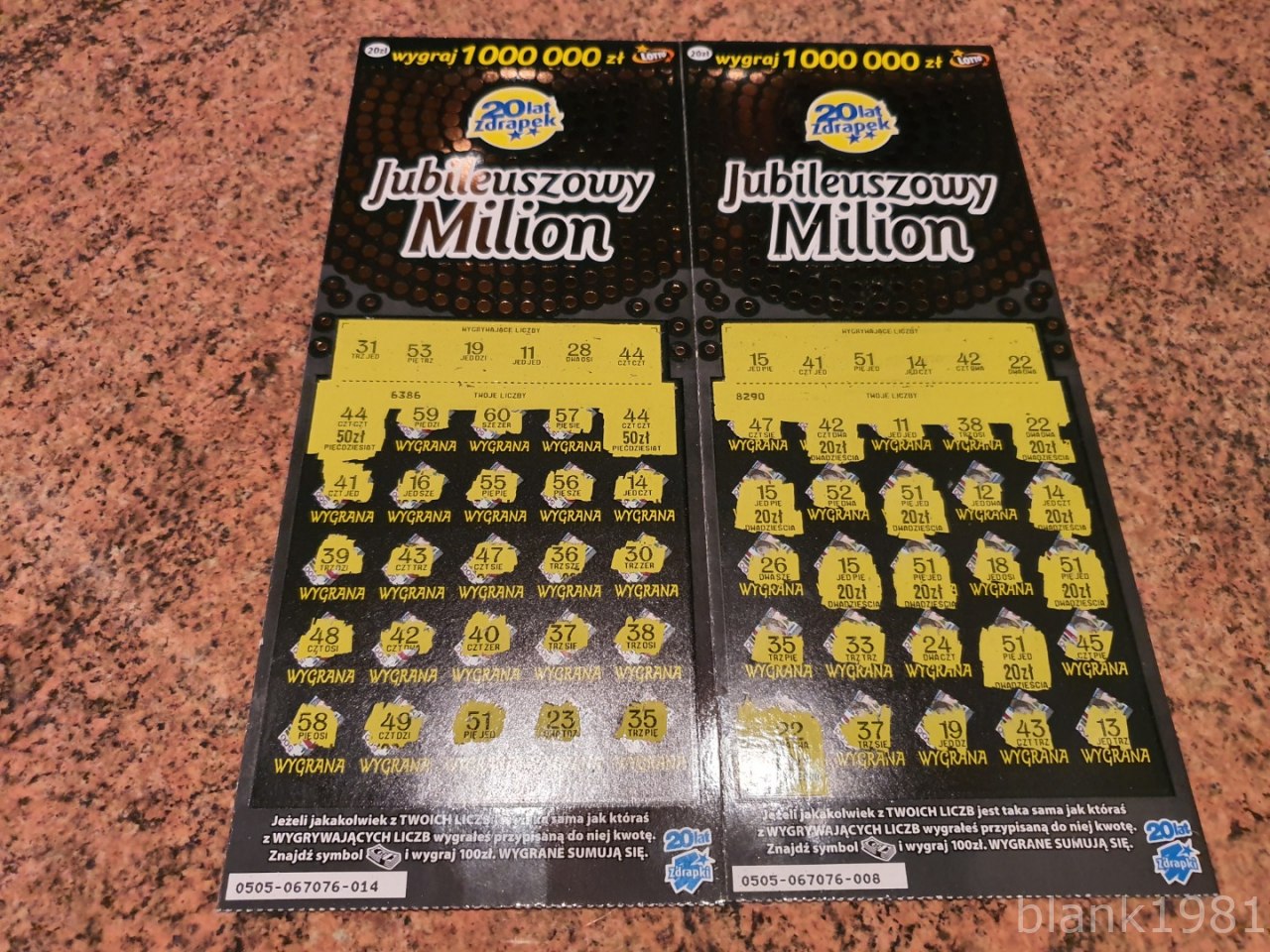 Wzięłam dwie z otwartej przy mnie paczki.W zdrapce numer 003 trafiłam 20 zł a w zdrapce 008 50 zł