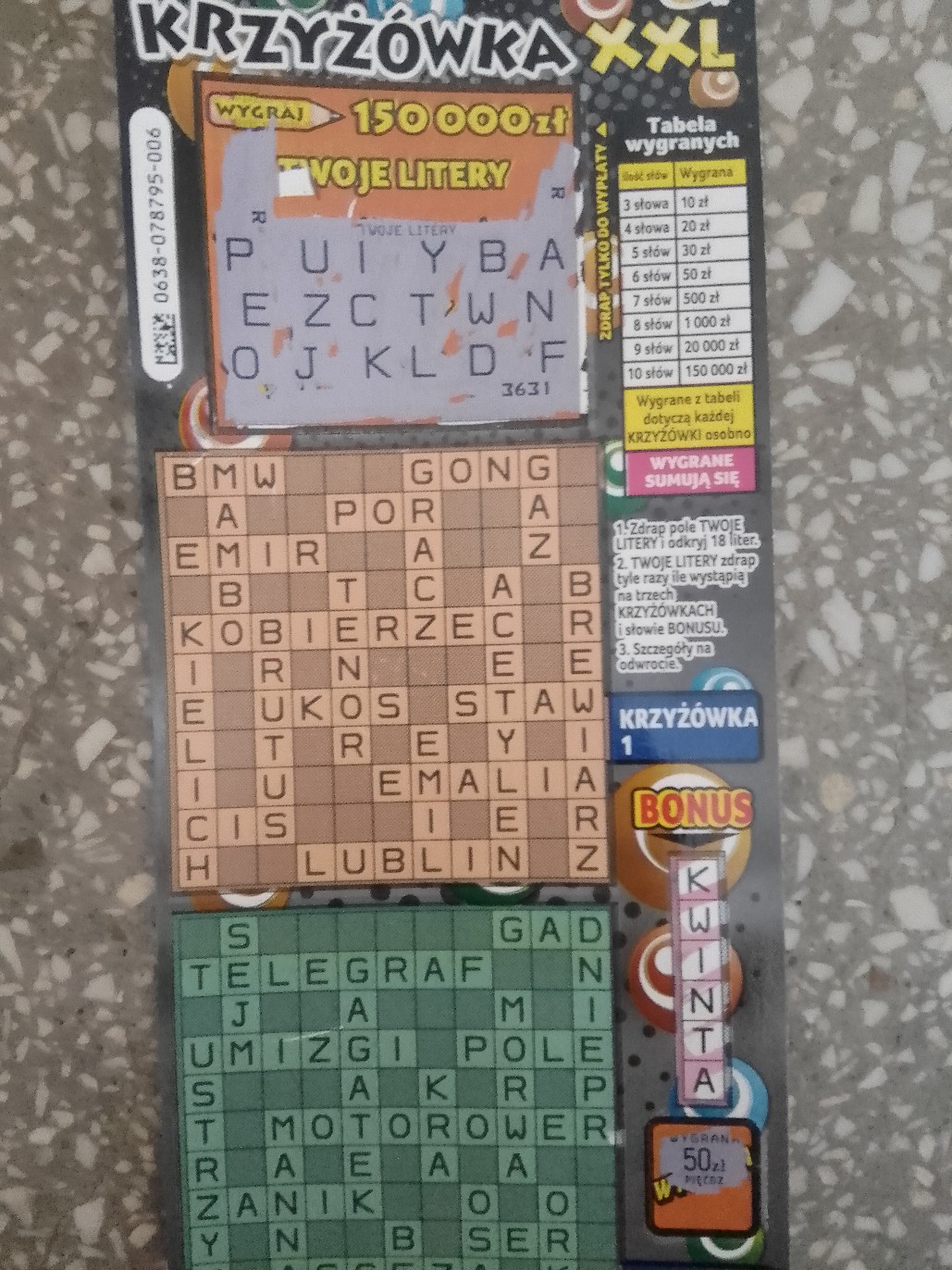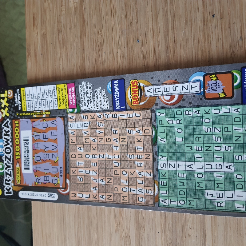 Raczej omijam juz krzyżówki po 10 ale raz w miesiącu zdarzy mi się takową kupić. Dzisiaj wziąłem 2szt, nr 025 pusty natomiast w 001 ułożył się bonus MUSZLA i po raz pierwszy w tej zdrapce wygrałem kwotę 70zł