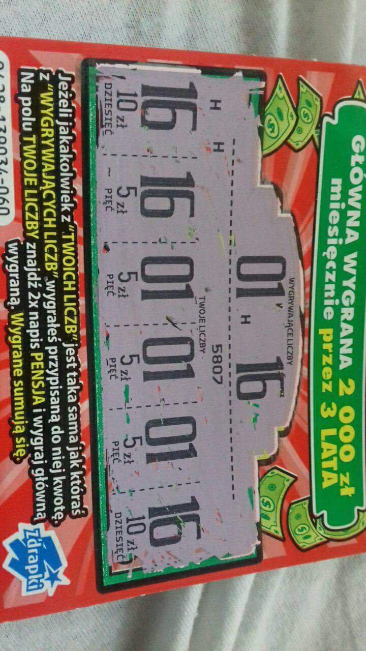 Mnie naprawdę zastanawia fenomen tej zdrapki wśród drapiących (oczywiście mowa o Januszach drapania), bo kto w tym trafia cokolwiek ciekawego, nawet największe laiki wyczają, że coś jest nie tak skoro max co się trafia to 2zł a raz na rusku rok to 10zł czy 15zł. Dla mnie jedynym logicznym rozwiązaniem jest te hasło 2000zł co miesiąc prze 3 lata albo ludzie biorą ją wzorując się na lepszych starszych siostrach ekstra i mega i myślą, że też się da zbijać koksy. Jak dla mnie Pensja od dawna nie ma racji bytu, ale niestety nadal ją trzeba znosić