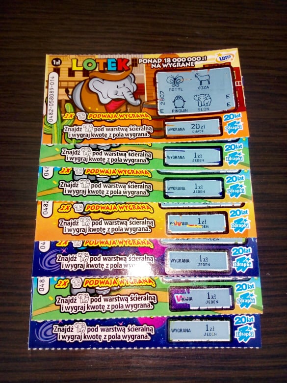 Wziąłem dziś 7 szt. Parę kosmonautów, parę tzw. Holendrów, różne leżały rozłożne to 7 sztuk zdrapki wyskubałem w jednym punkcie. No i 5 pustaków, jeden zwrot, a w jednym mój rekord w Słoniku. Może niewiele, ale mnie bardzo cieszy w zdrapie za 1.