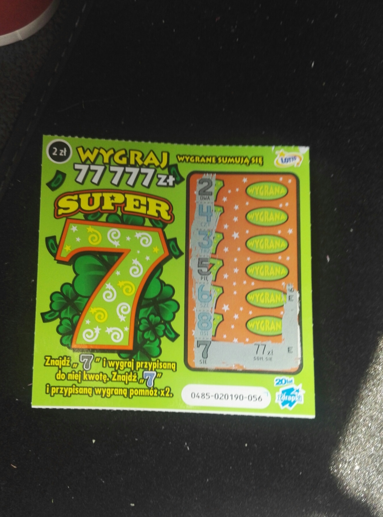 U mnie maximum to 14zł. Ciężkie są te tańsze zdrapki z wielomilionowymi nakładami. A 77zł jest dla większości nieosiągalne. To co tu mówić o jakiejkolwiek przyzwoitej większej wygranej.