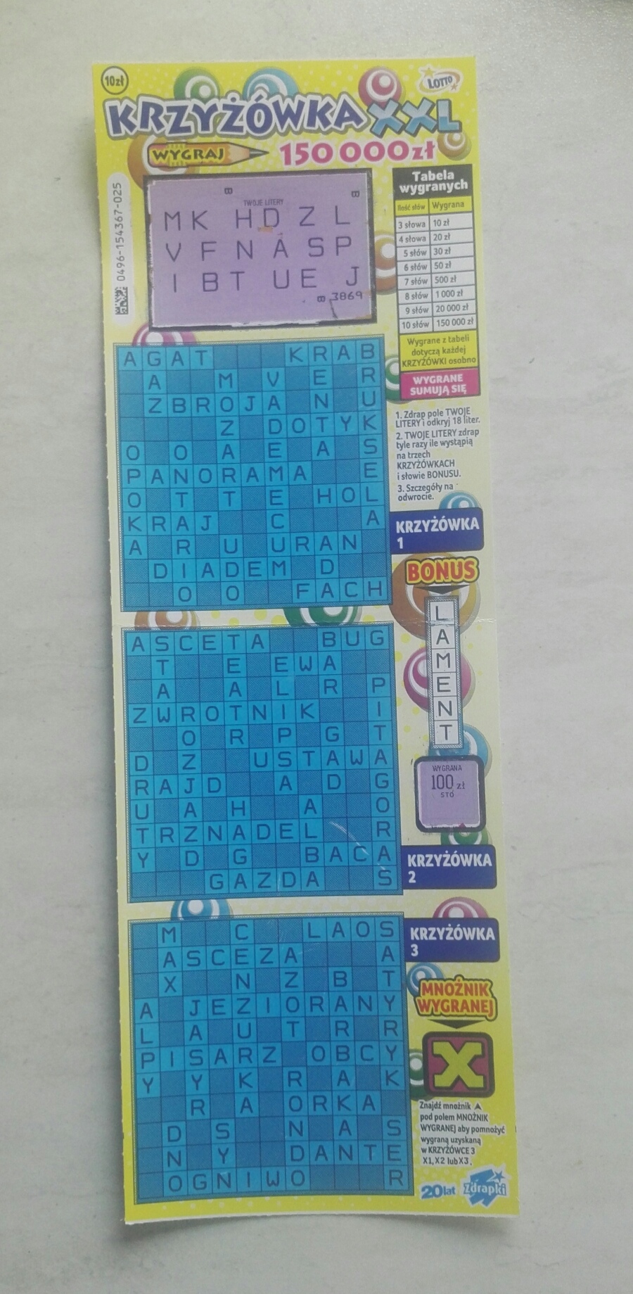 Dzisiaj z tej samej paczki pustak w nr 012 i 30 zł w nr 004 w bonusie BULWAR