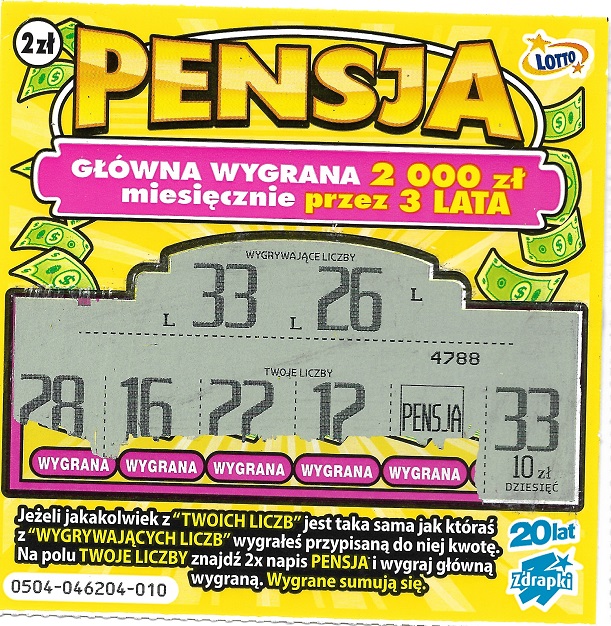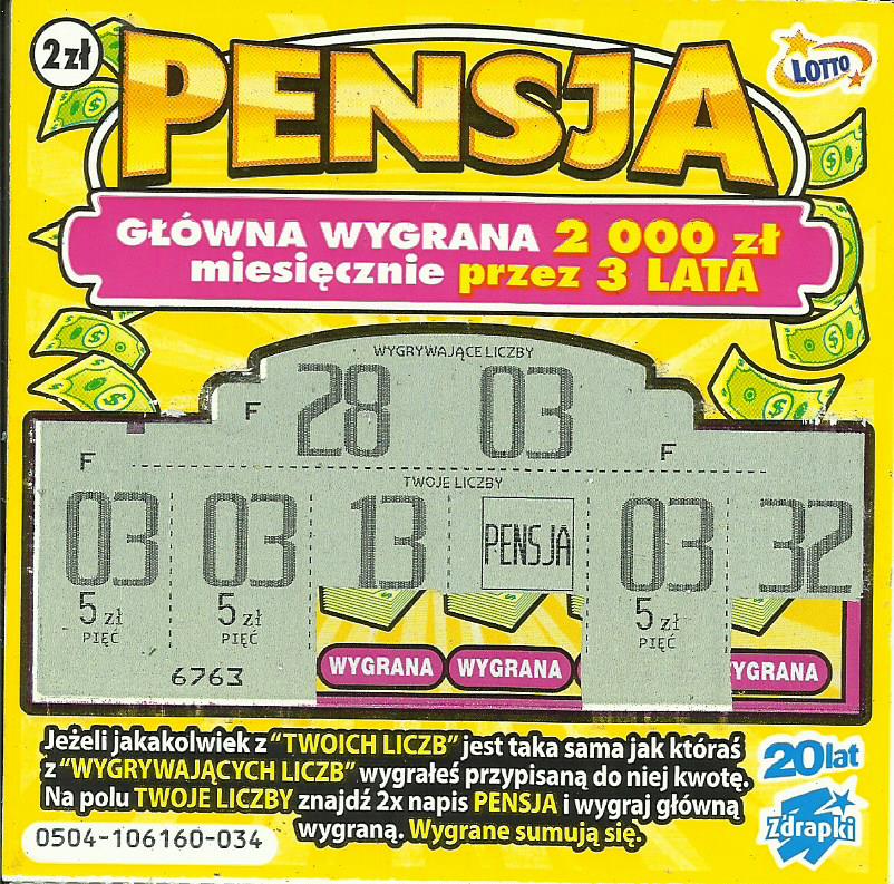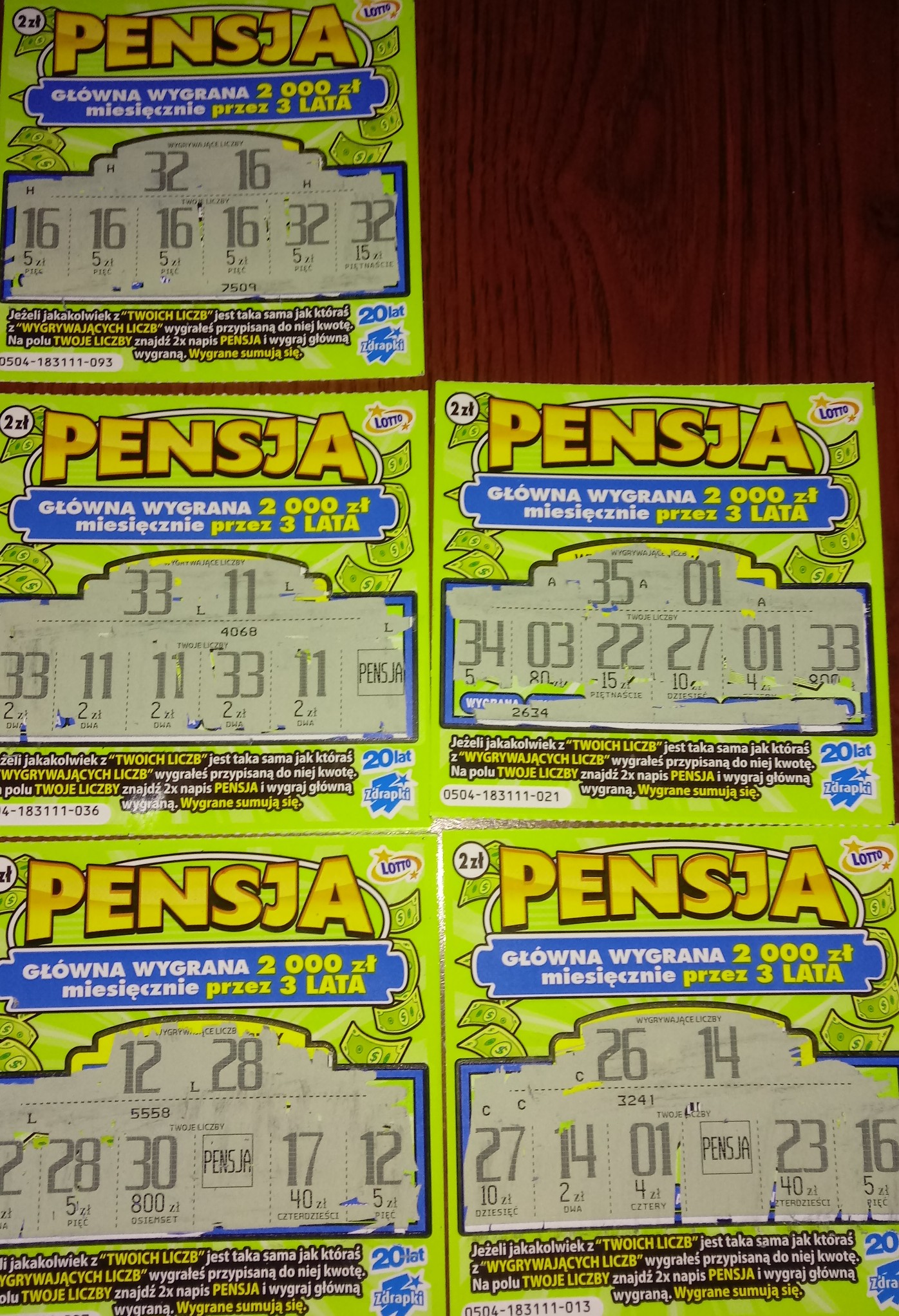 10 zdrapek po 2zł dało zwrot w happy i lucky 7 oraz 10zł w pensji.