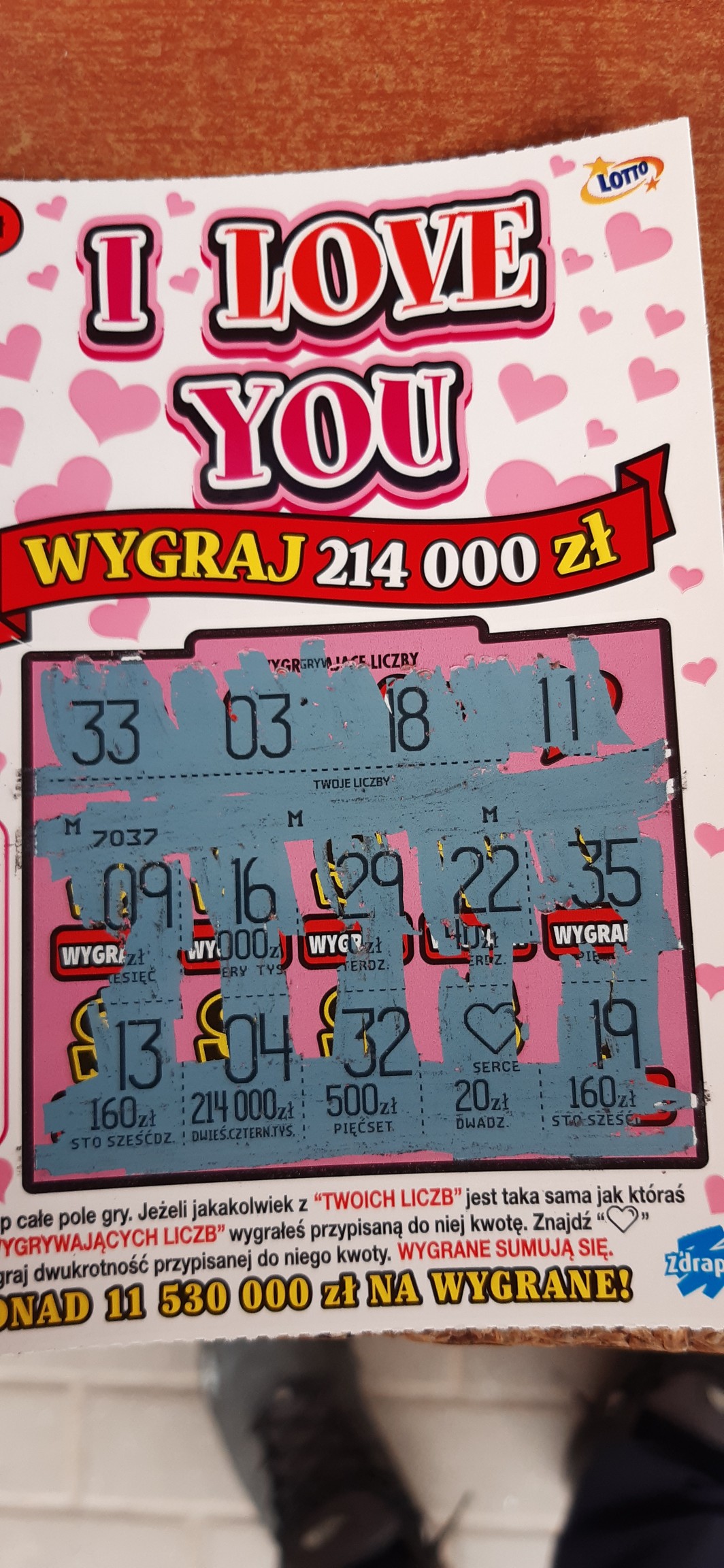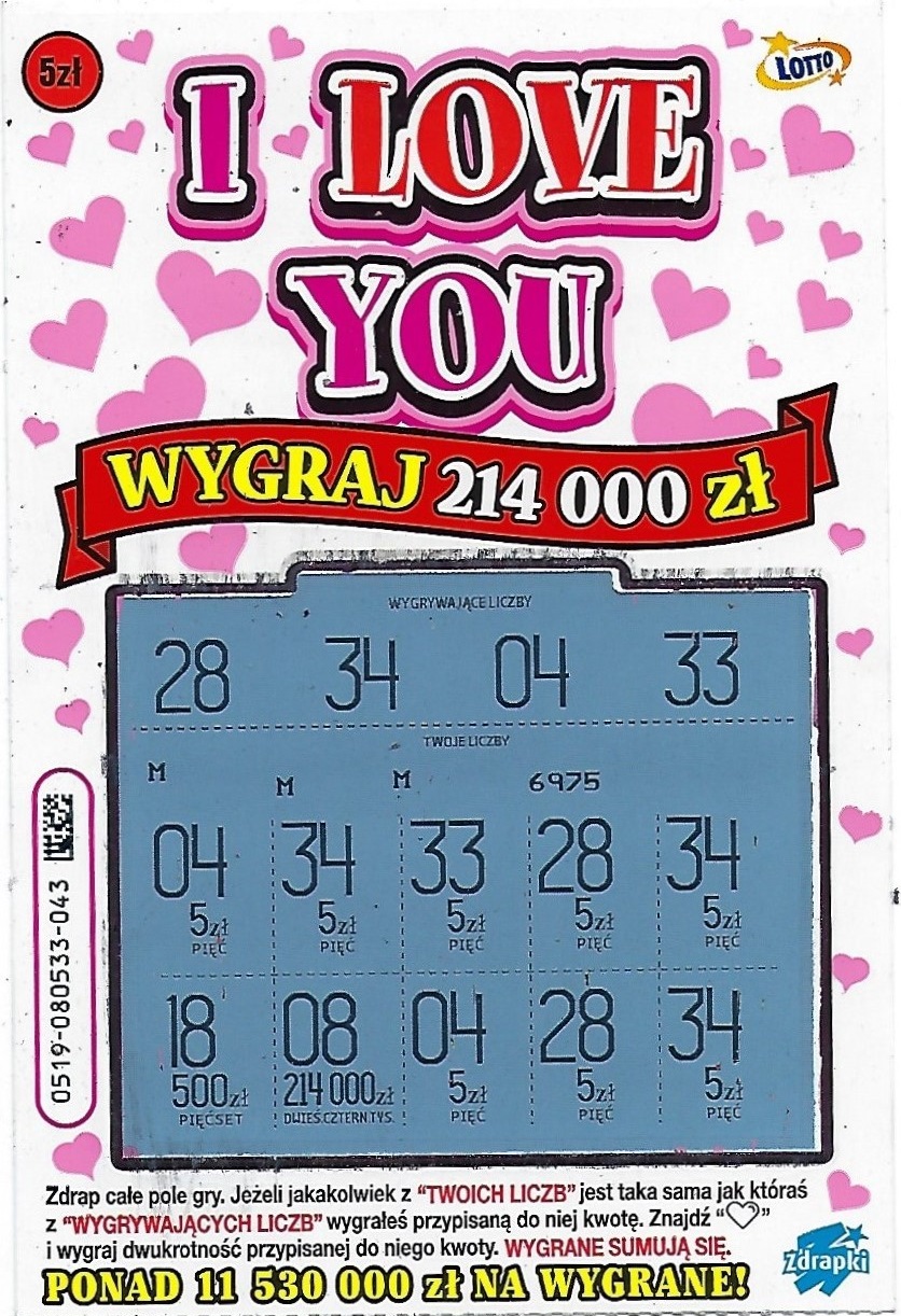 Zdrapka nr.022 wygrana serduszkowe 20zł. nr.044 20zł wrzuciłbym zdjęcia ale są za duże..