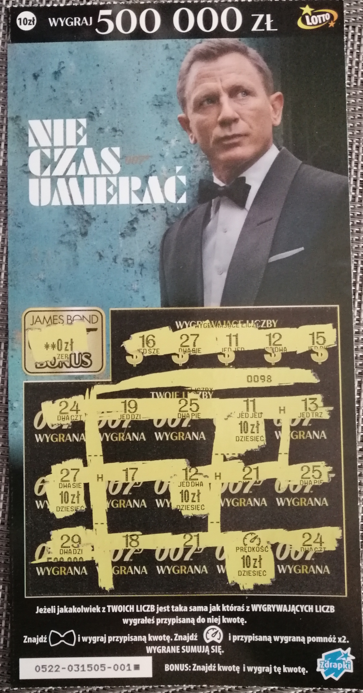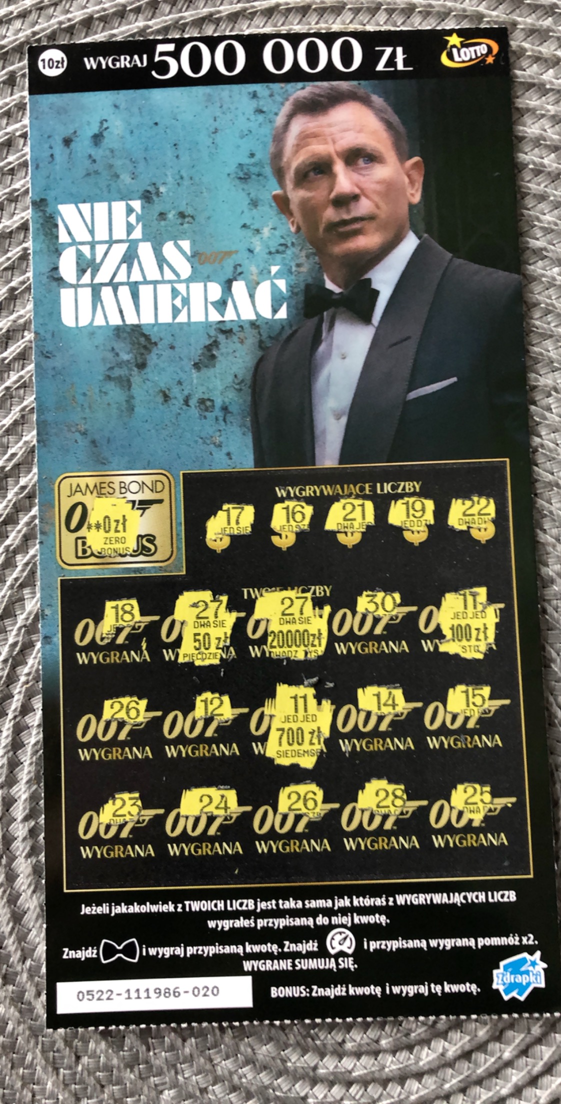Aczkolwiek tutaj niekoniecznie musi być błąd bo może to być tylko szablon liczb gdzie w innej zdrapce w takim samym rozkładzie liczb te dwie będą wygrywające np. po 10 zł każda