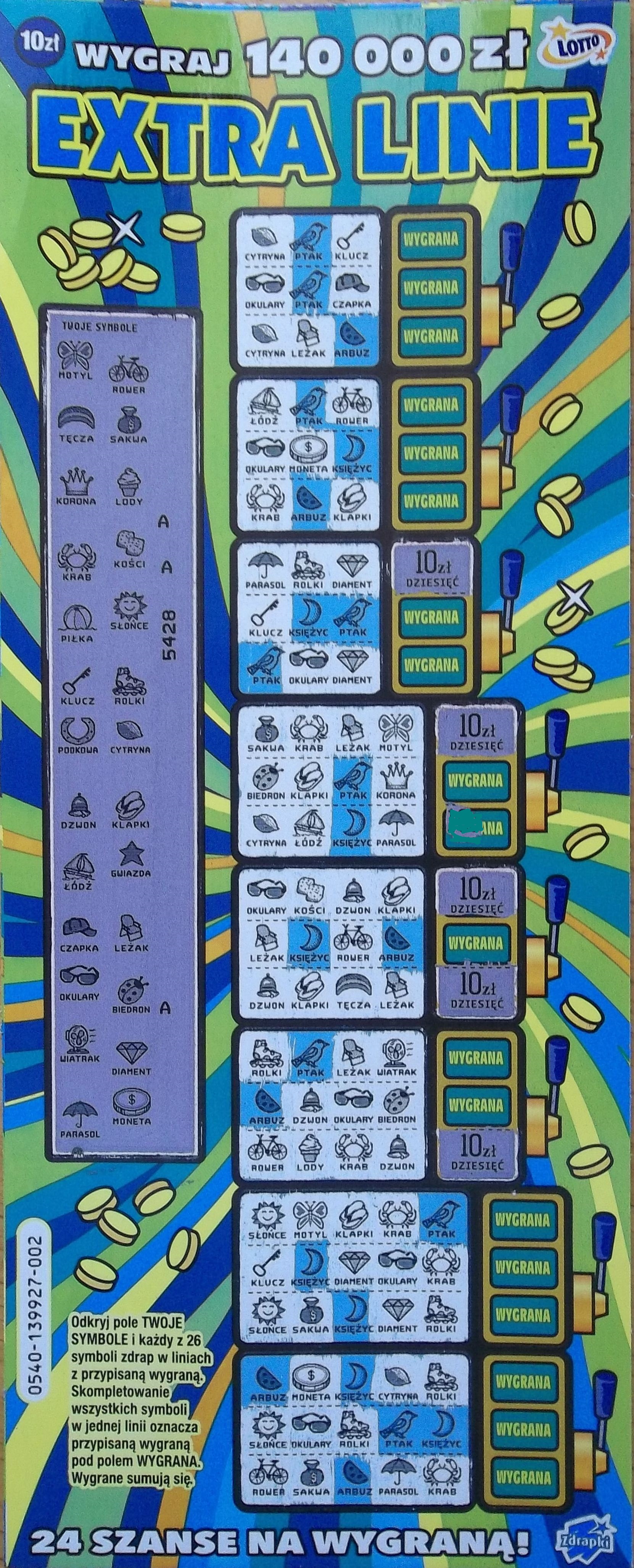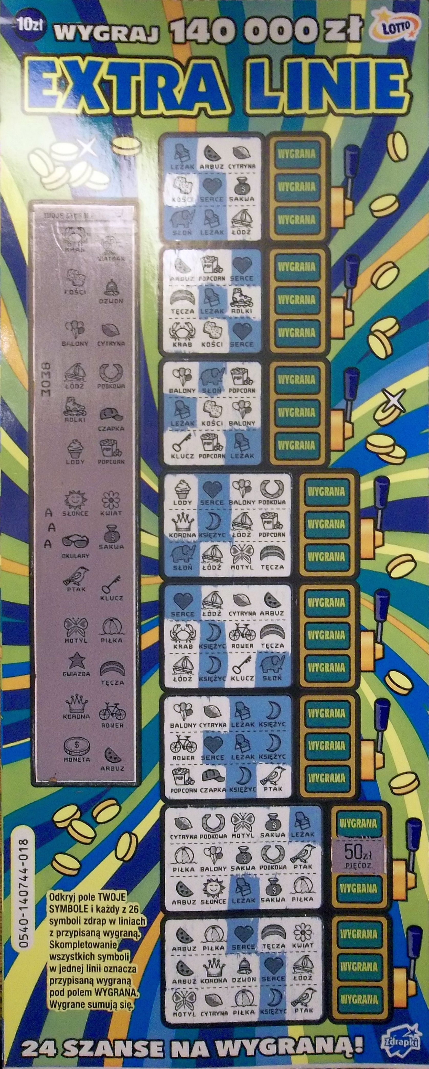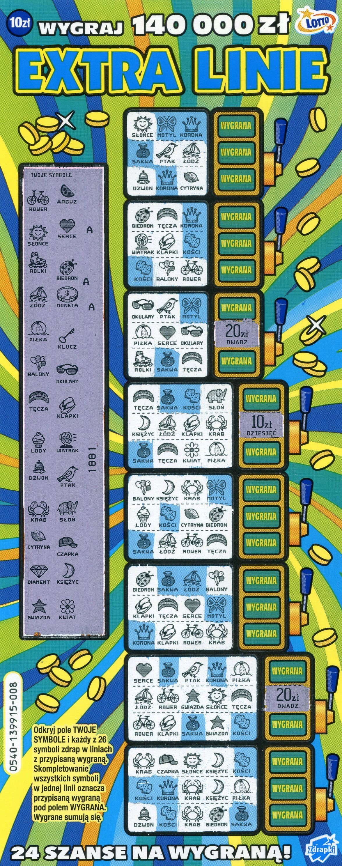 Na 5 sztuk 1 wygrała 20zł..