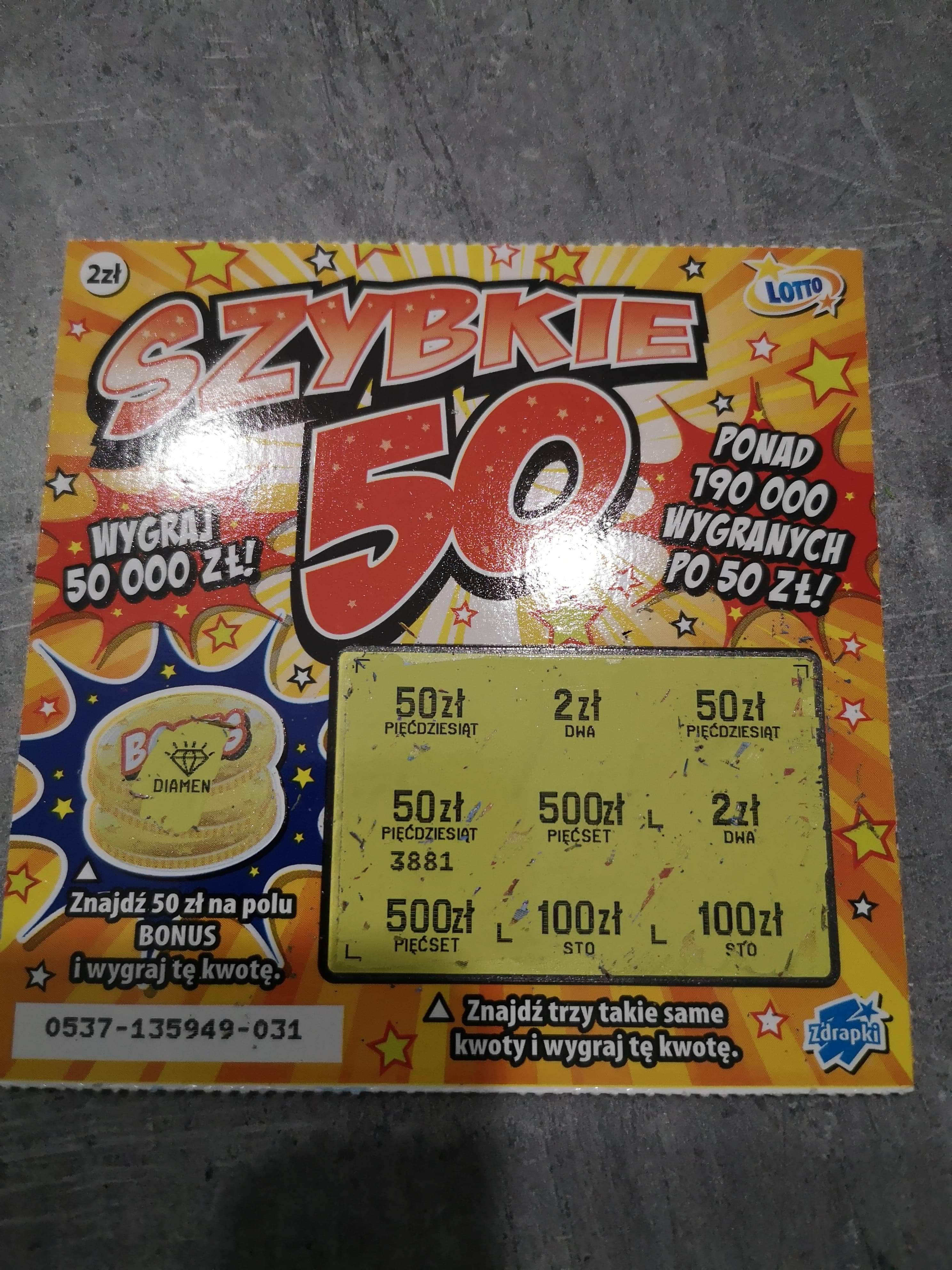 Mojej siostry 50tki, lubi ją ta zdrapka, a w tej edycji więcej jak 10szt nie kupiła, ja nigdy w niej 50zł nie miałam ale próbuję dalej
