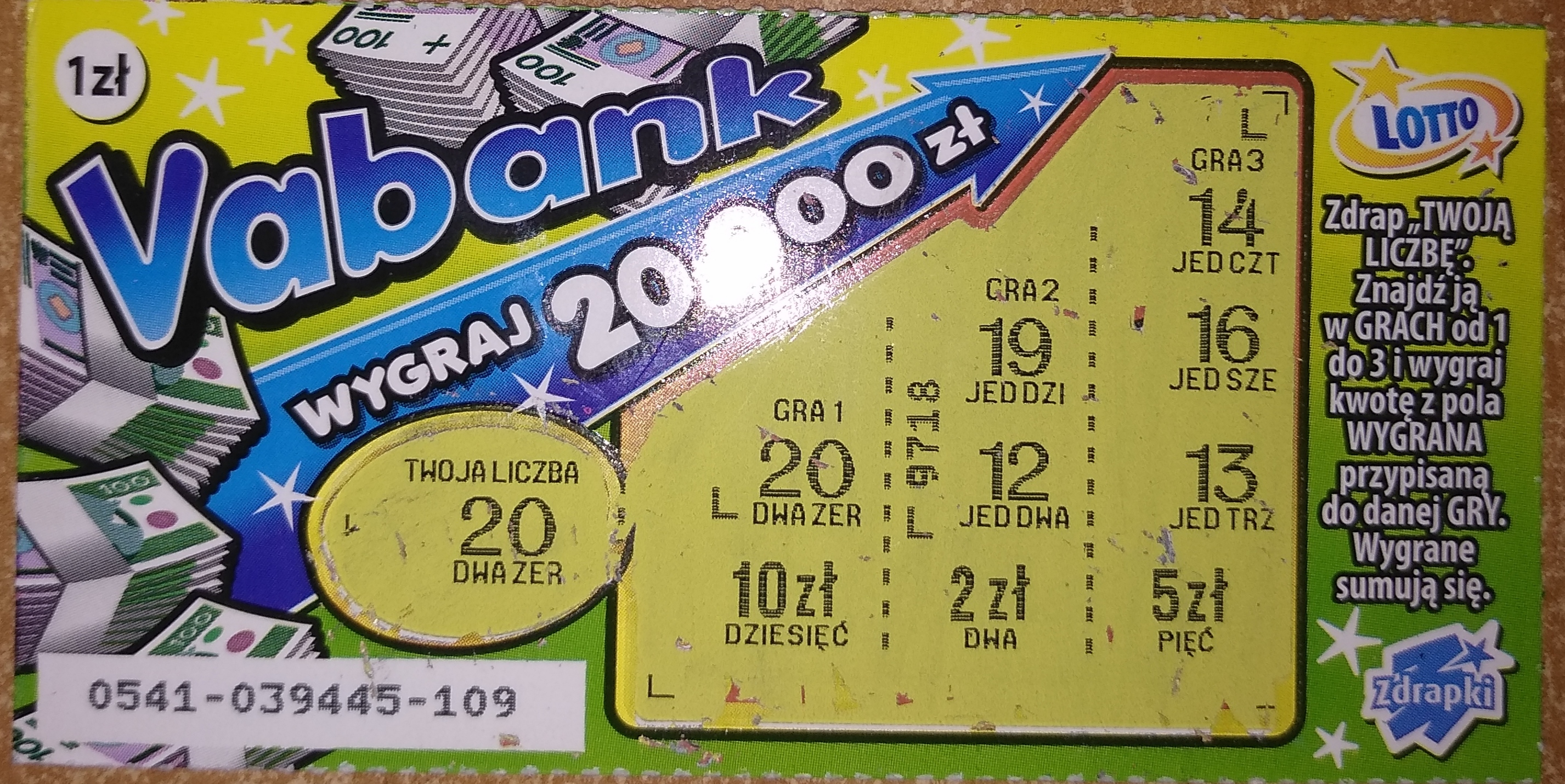 Vabank to jednak klasa sama w sobie. Dzisiaj w jednym punkcie wziąłem 3szt w których miałem 1x5zł, potem w innym dokupiłem jeszcze jedną zdrapkę i trafiłem 10zł.