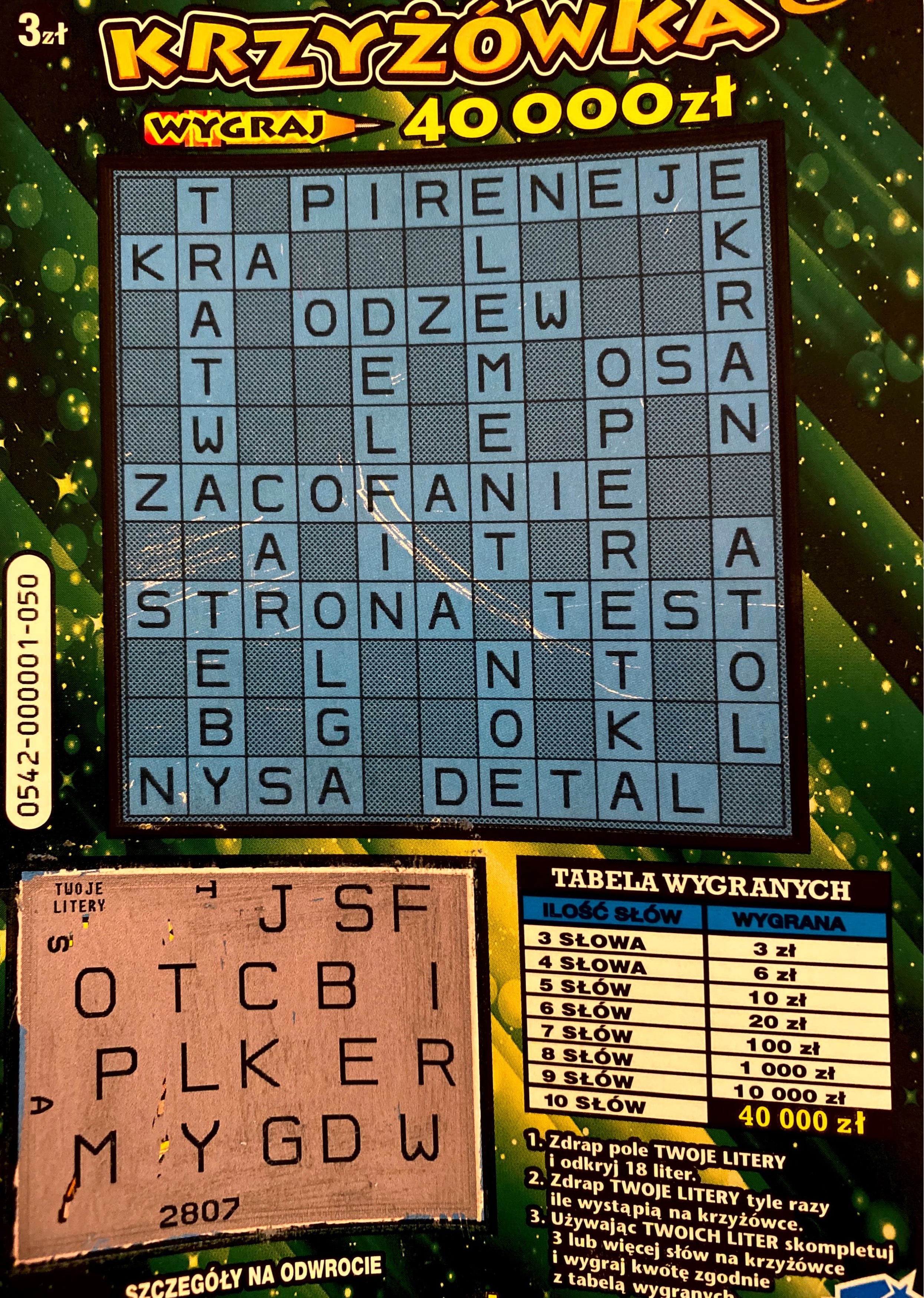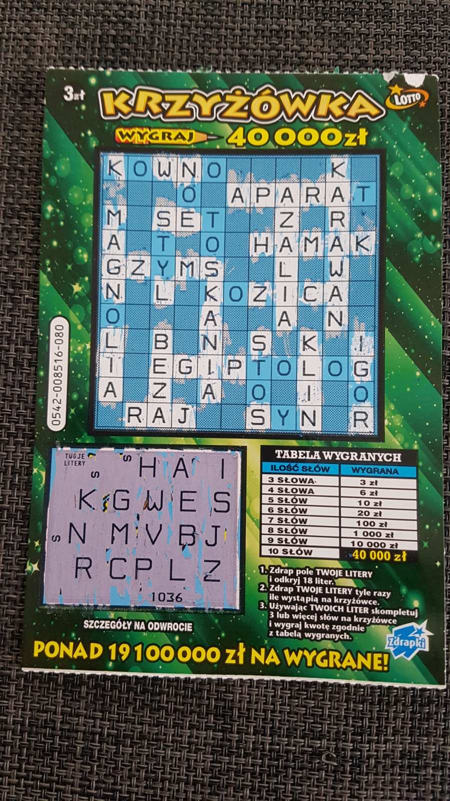 Przy jednej sztuce trafiłam 20 zł, które wymieniłam w innym punkcie na 7 zdrapek po 3 zł (linie, krzyżówki) i tylko 3zł wydrapałam.