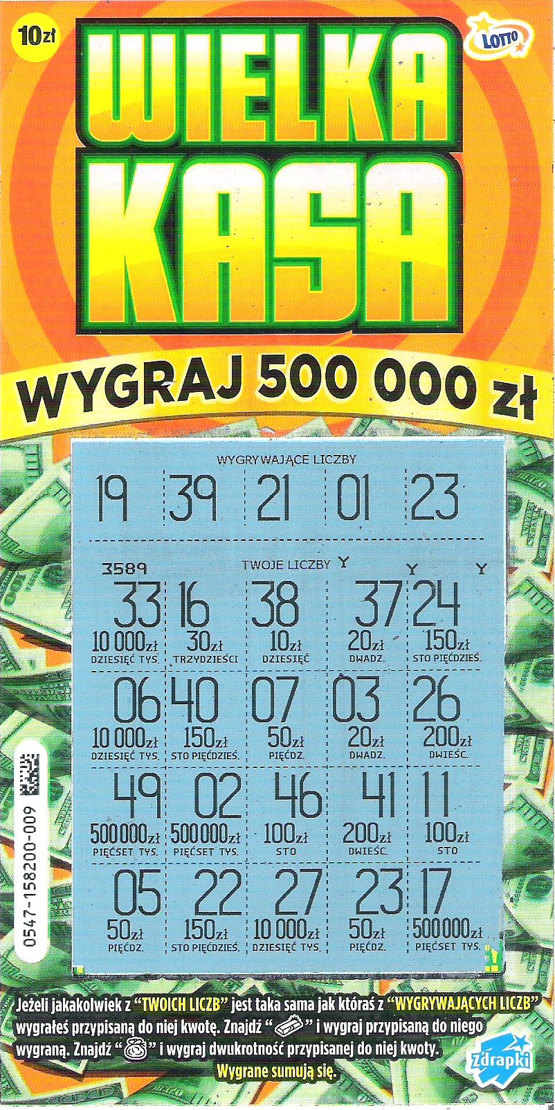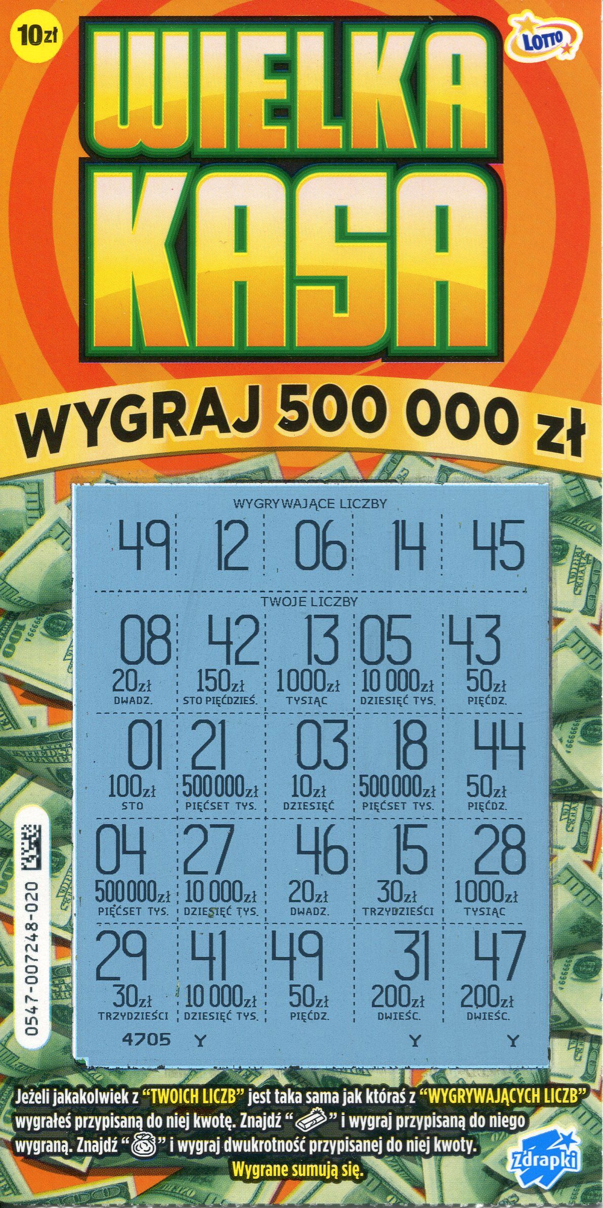Nie polubię się chyba z tą zdrapką. Od jej początku zdrapałem kilka sztuk i tylko raz wpadł zwrot.