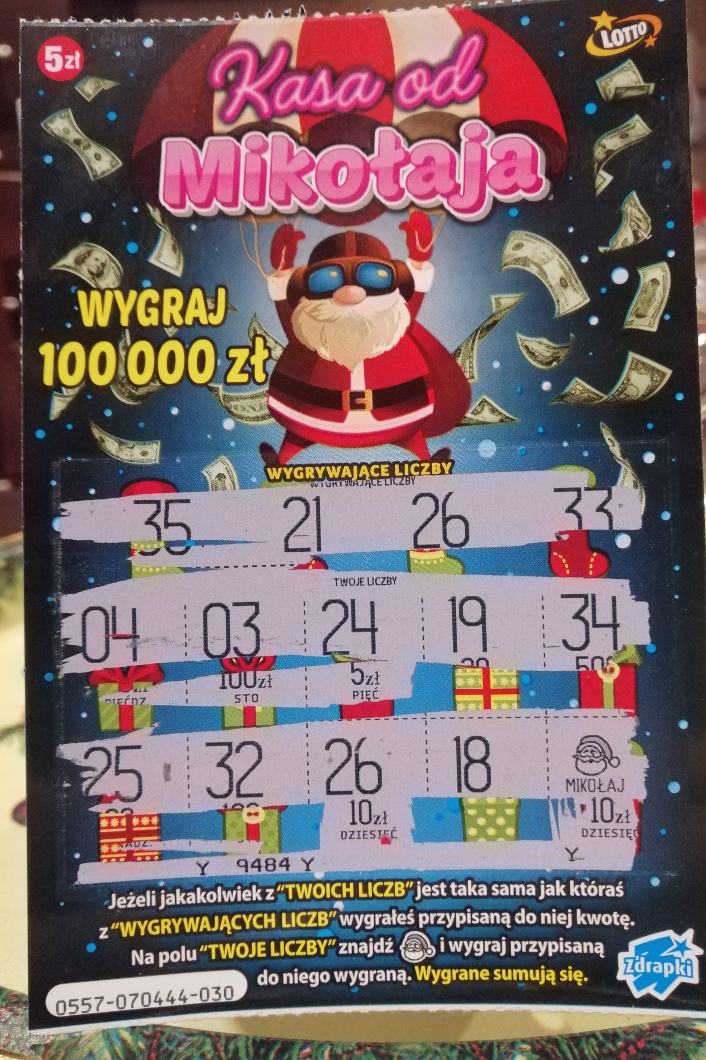 Jak dla mnie szczęśliwa bardzo zdrapka bo na 5 kupionych od premiery sztuk tylko jedna była pusta. A pozostałe to 5zł,10zł i 2 x50zł.