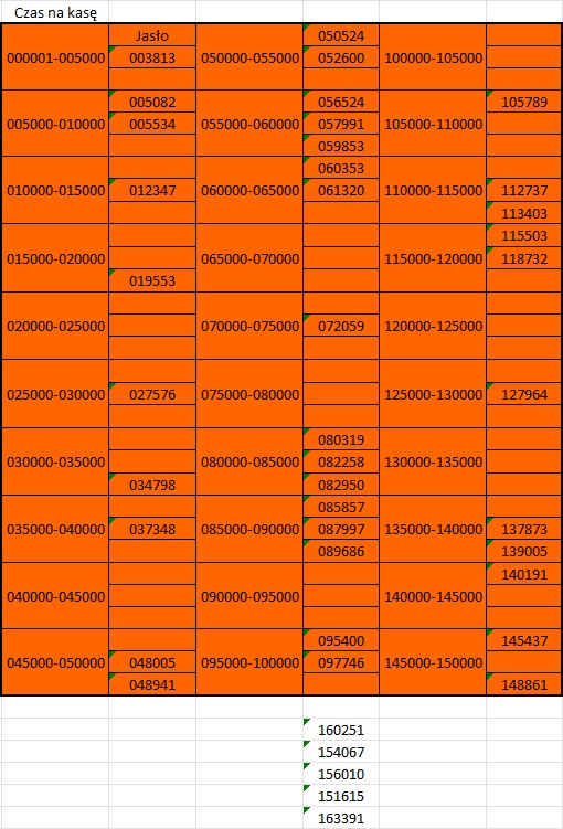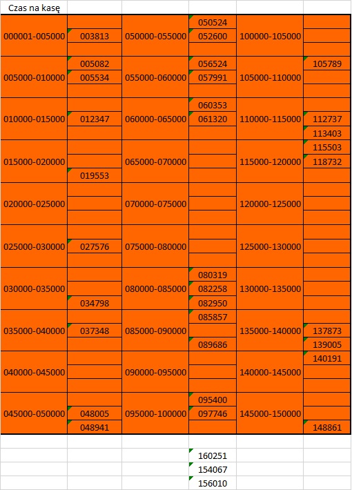Grzybku -wymagania masz niewąskie hehe. Takie są serie: 003497 lub 000906, jak niesatysfakcjonujące to napisz, popatrzę jeszcze w innych budach. A ta wygrana to padła kilka km ode mnie- na marginesie nigdy tam nie byłem. Ponoć w budzie u jolki padło 14k w e.liniach-u mnie wszędzie spalone serie.
