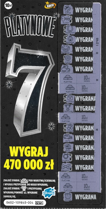 Zakupiłem 5 sztuk . Gorsza trzczionka i ta platyna się zlewa z innymi i przeoczyłem tą platynę i tylko kontrolne pokazały że jest wygrana . Trafiłem 20 i 10 zł. Powiem tak dużo gorsza od bonusa 7 .