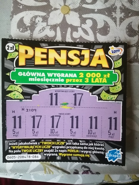 Ja już bym wiedział co wygrałem bo w pensji przy pustaku kwoty się nie powtarzają. Gratka za 40zl