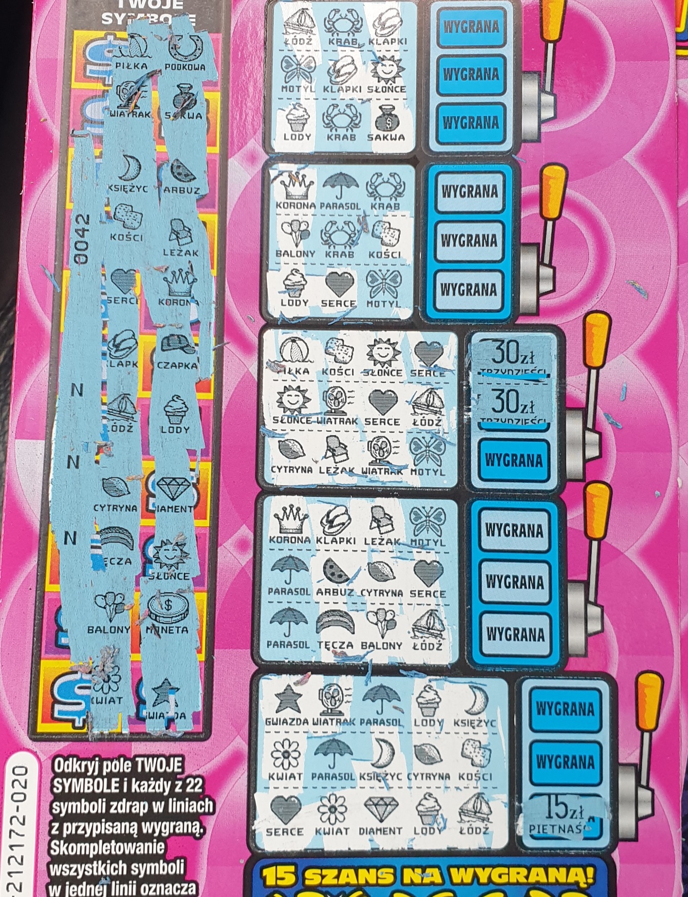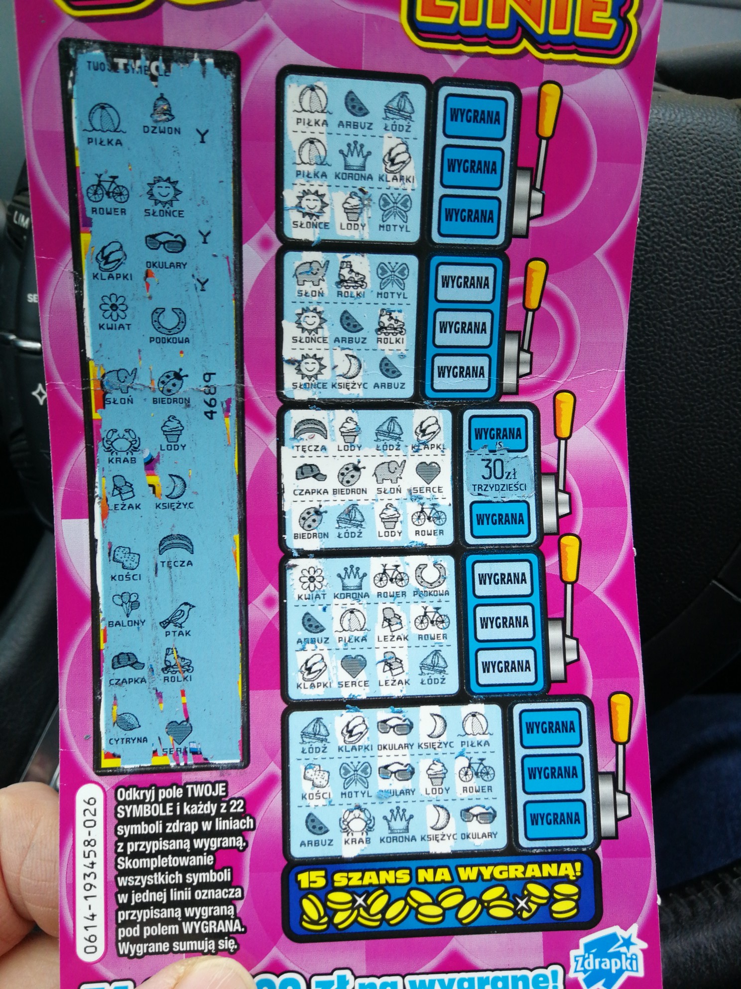 Wczoraj wpadło 30 na 022, dziś kupiłem po jednej w trzech budach i nic. Ale w/g mnie jeśli idzie oczywiście o wygrane pośrednie, jedna z lepszych zdrapek po 5. Tylko wysokość głownej nie powala-ale też niby "łatwiej" ją trafić. Powoodzenis