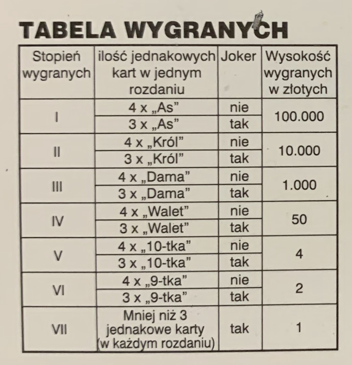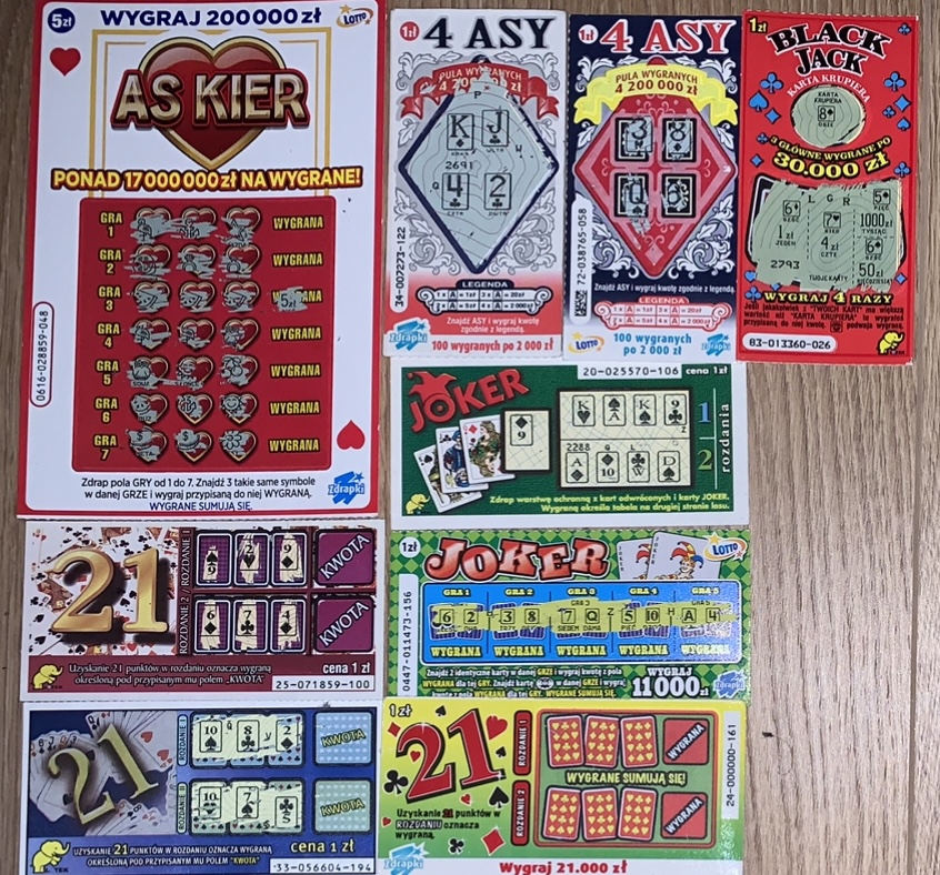 Ja kiedyś lubiłem 4 asy (raz miałem 20zł). Fajną formułe miał Black Jack ale jego akurat chyba nigdy nie drapałem. W Jokerze z 2001r. totalnie nie wiem o co chodzi bo nie ma zasad gry, a raczej brakuje legendy która może by coś rozjaśniła.