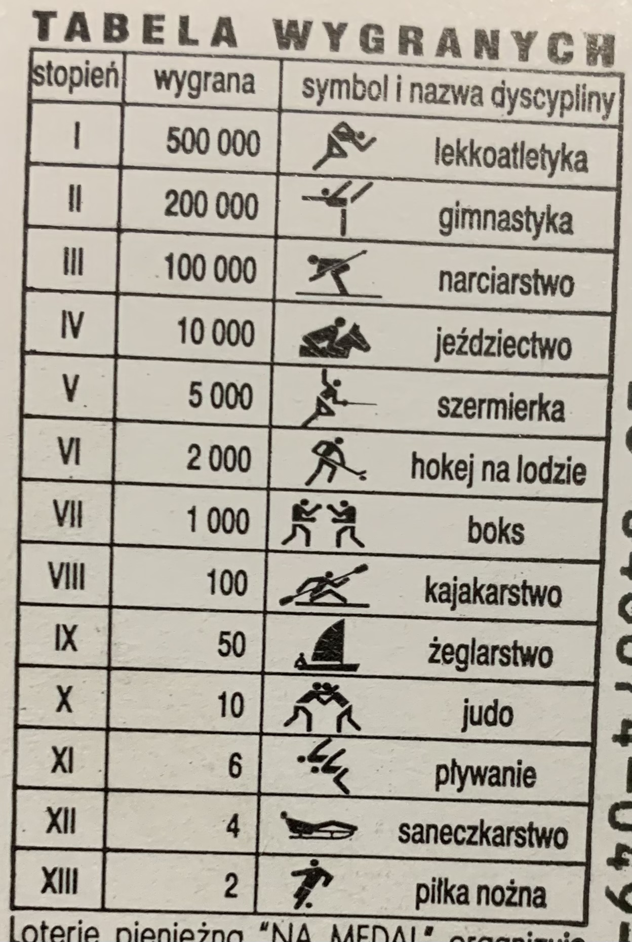 Tabela wygranych: