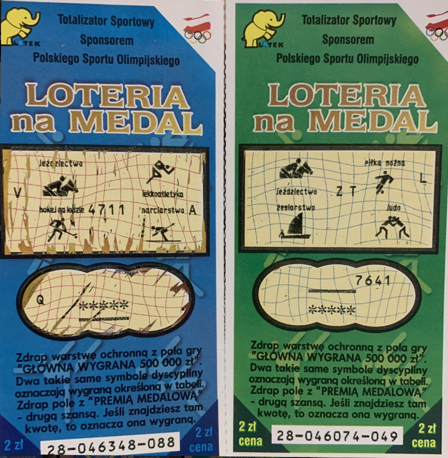 Tak dla przypomnienia pierwsza olimpijską zdrapką była „Loteria na medal” za 2 zł wydana w 2002 roku, to już właściwie 20 lat temu, 2 lata później w 2004 pokazała się zdrapka „Olimpijska” również przy cenie 2 zł. Dopiero w 2008 roku ukazał się jednozłotówkowy „Złoty Medal” mający wznowienie w 2010 roku.