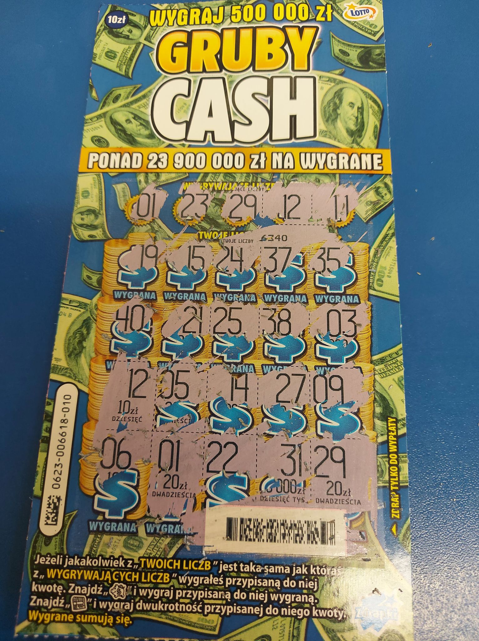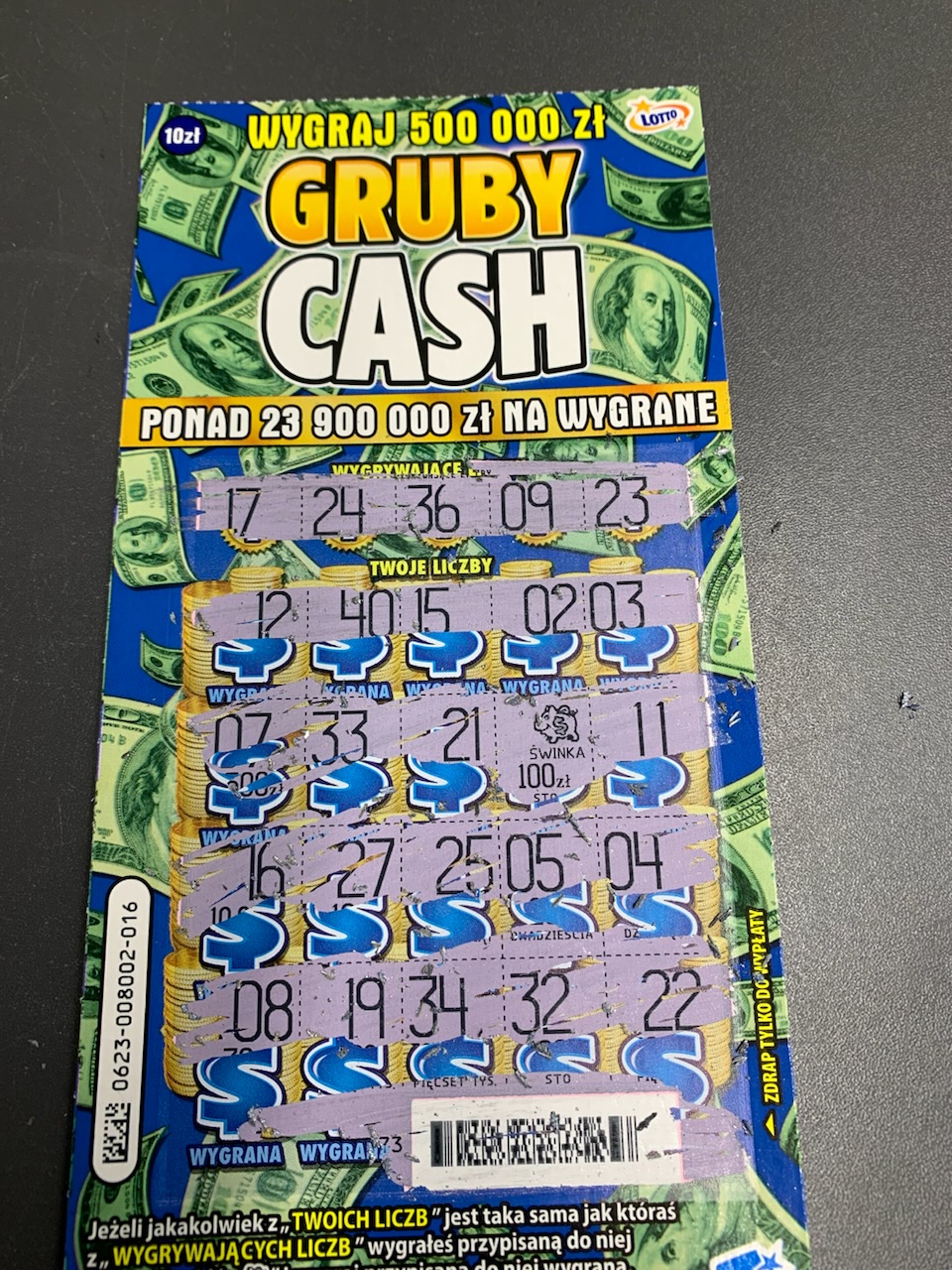 Ja dziś kupiłem 5 sztuk i tylko w jednej zwrot reszta pustaki ta zdrapka coś mnie nie lubi z tego co widziałem jakieś wygrane jeszcze w niej zostały wieksze