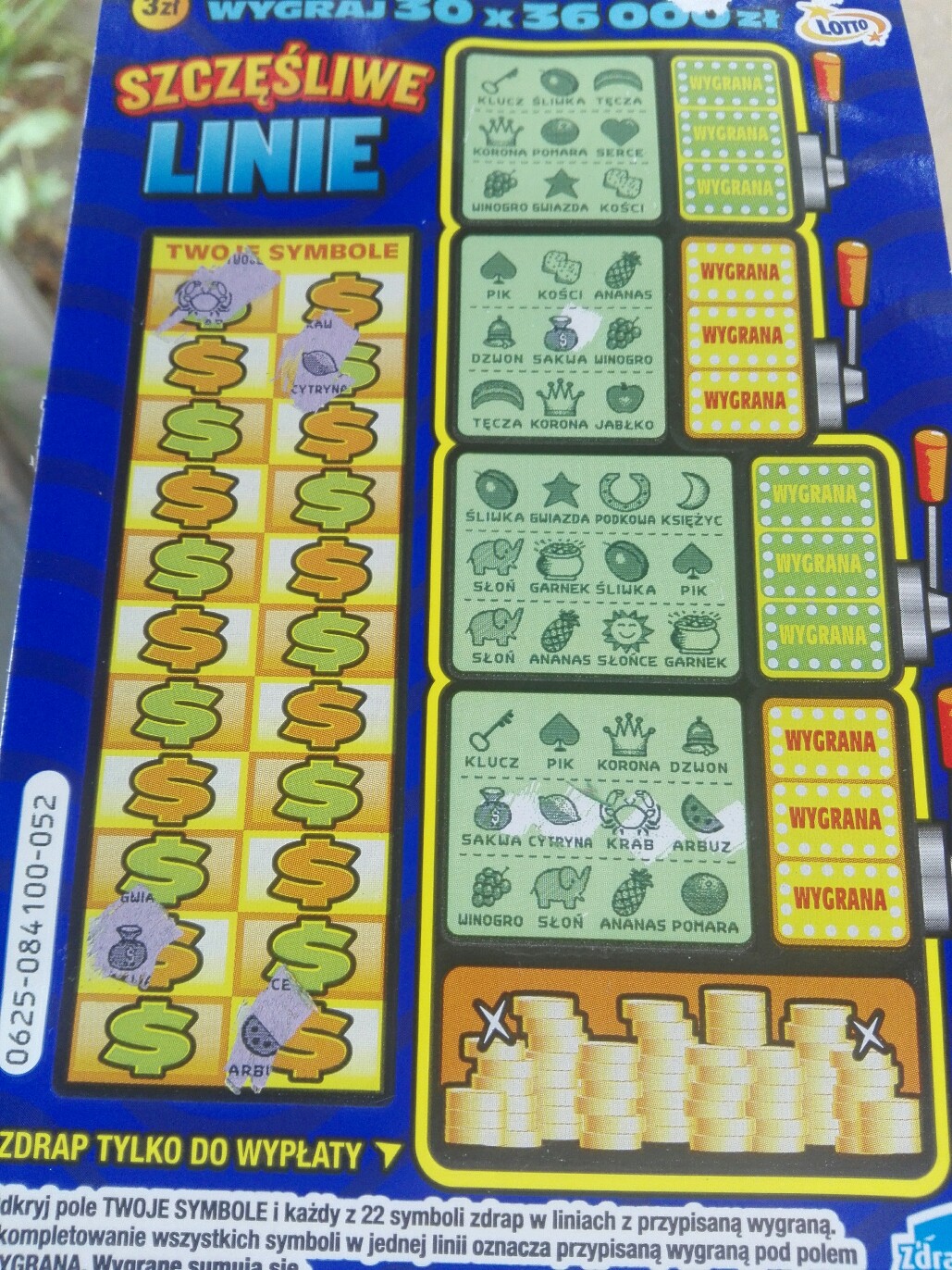 Ta zdrapka jest tak durna, tu żeby wydrapać więcej niż zwrocik to trzeba mieć mega szczęście, nie wspominając już o niesamowitym farcie żeby zgarnąć uwaga aż "36" ziko